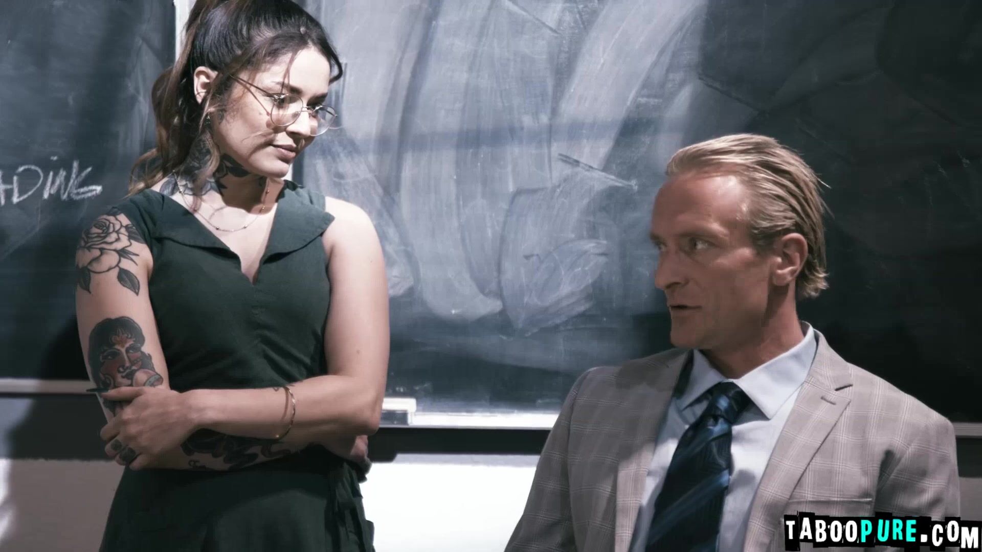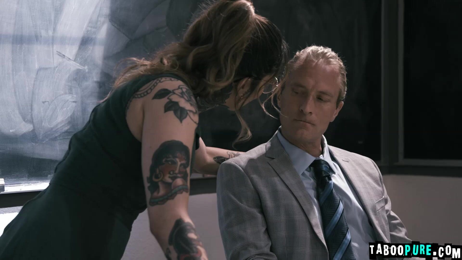 Tattoo lady Vanessa Vega and her former teacher, Mr. Clarke Kent, enter Vanessa's old classroom so she can reminisce. She angrily reveals that Mr. Harris was having sex with plenty of other girls in her class before, why not HER? She wants the closure so she is offering him sex one final time