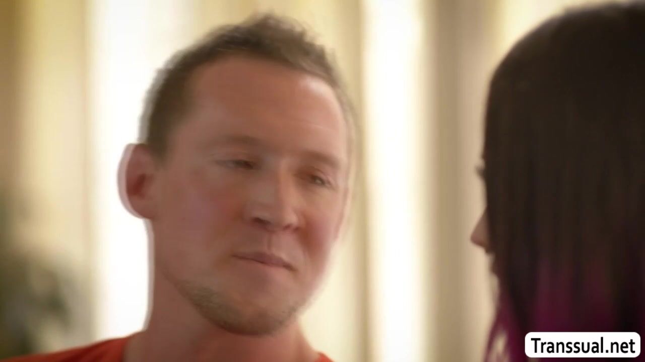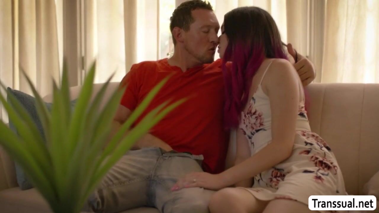 Lovely Shemale welcomes her stepbrother after not seeing each other for many years.After that,they start talking on the couch and then they get horny and start kissing each other.Next is,she throats stepbros dick and lets him lick and fuck her ass.