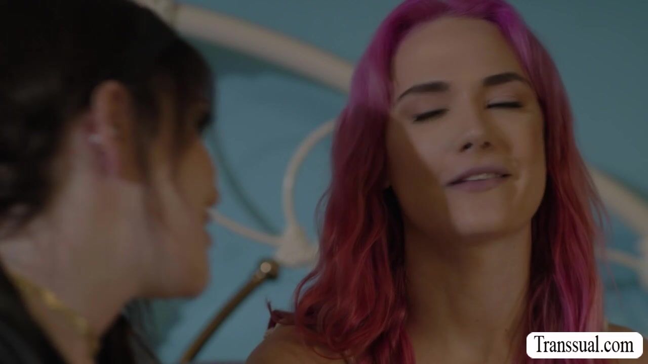 Busty Trans Woman and her hot stepsister are on the bed kissing each other passionately.After that,she lets her stepsister throat her tranny cock.In return,she fucks her tight wet pussy so deep and hard.