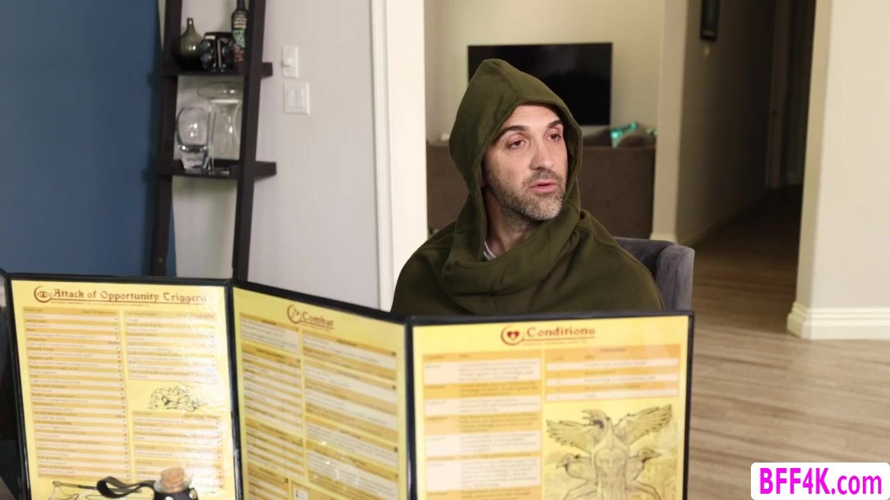 Three hot teens are busy playing D&D but aren’t sure how to get past a particularly tricky quest.They bring the dungeon master into the room and they throat his hard big cock passionately.After that,they let him fuck their wet pussies so hard.