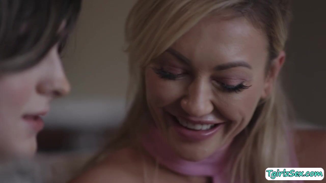 In the couch, small tits transsexual Ella Hollywood talks with busty milf Adira Allure but they get horny and begin kissing slowly undressing. Once naked, the two take turn pusys licking and cock sucking before the skinny tbabe bangs her pussy hardcore.