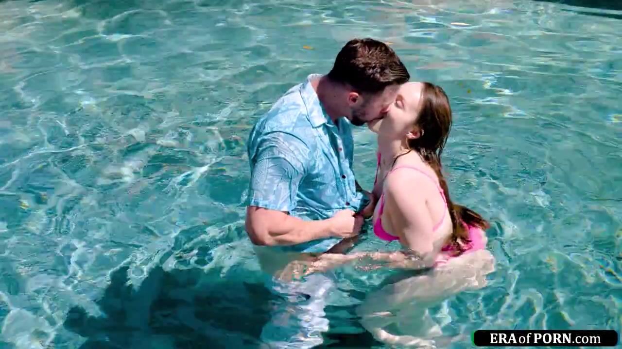 Pool cleaner checks out a busty milf and the cheating wife gets horny.She pulls out his big cock and deepthroats it.They kiss and then the big tits brunette is titfucked.Then gets banged outdoors as she rides his dick and masturbates her shaved pussy