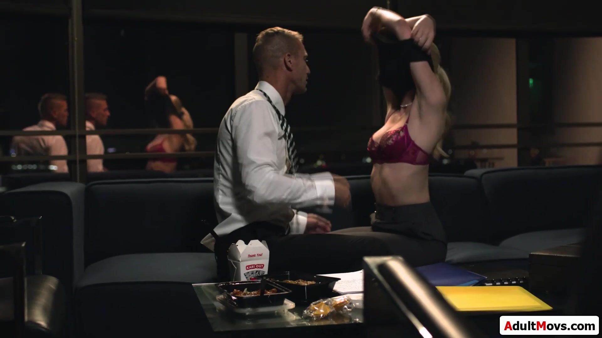 Boss cheats with younger blonde intern and the old and young couple kiss.He sucks the babes tits and masturbates her while shes sucking his big cock.The tall busty cutie spread to get her wet pussy licked.She climbs on his hard dick to fuck him