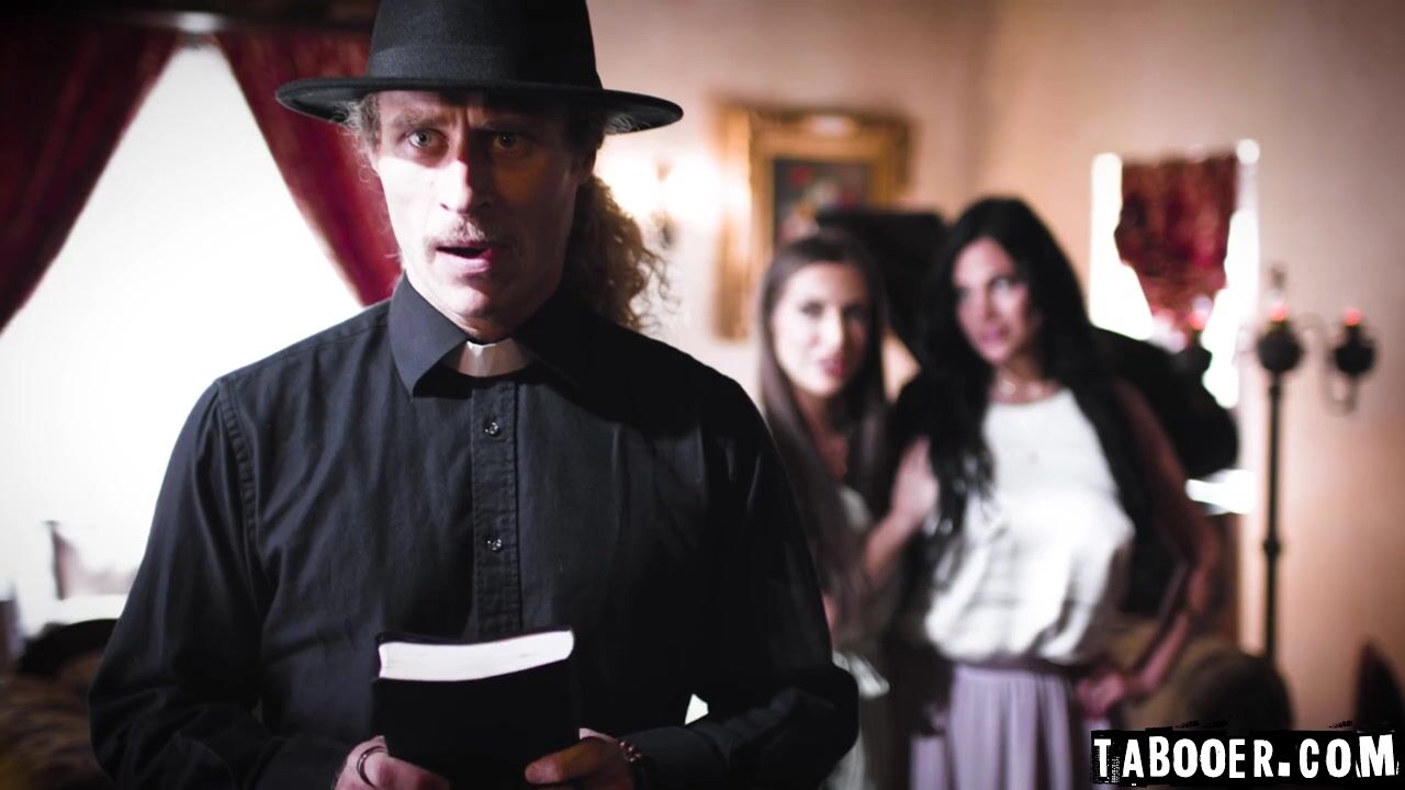 Michael Vegas is not going to officiate Spencer Bradley and Mona Azar's wedding. The lesbian couple are shocked, but had an idea to seduce Michael, who looks miserable, sad and monely. So they started seducing him by making out in front of him, until Michael give in to their lust