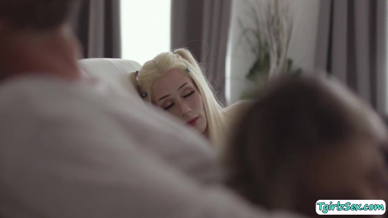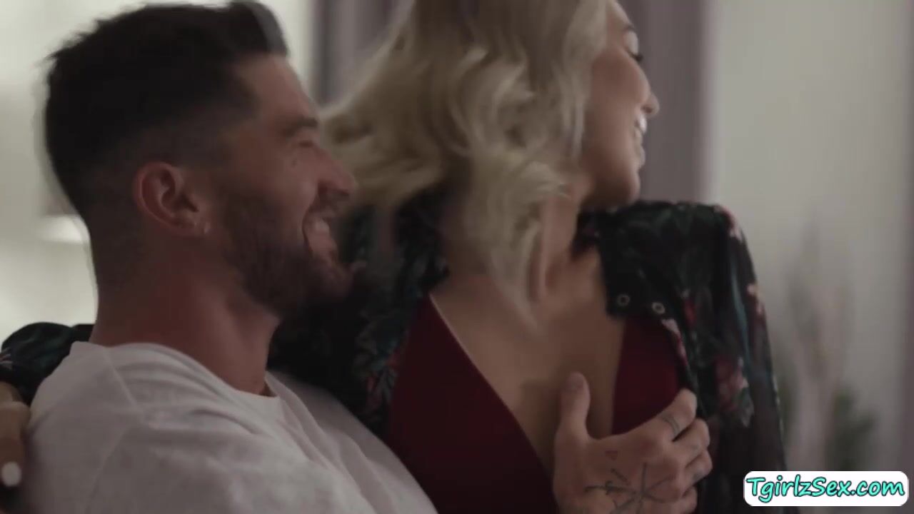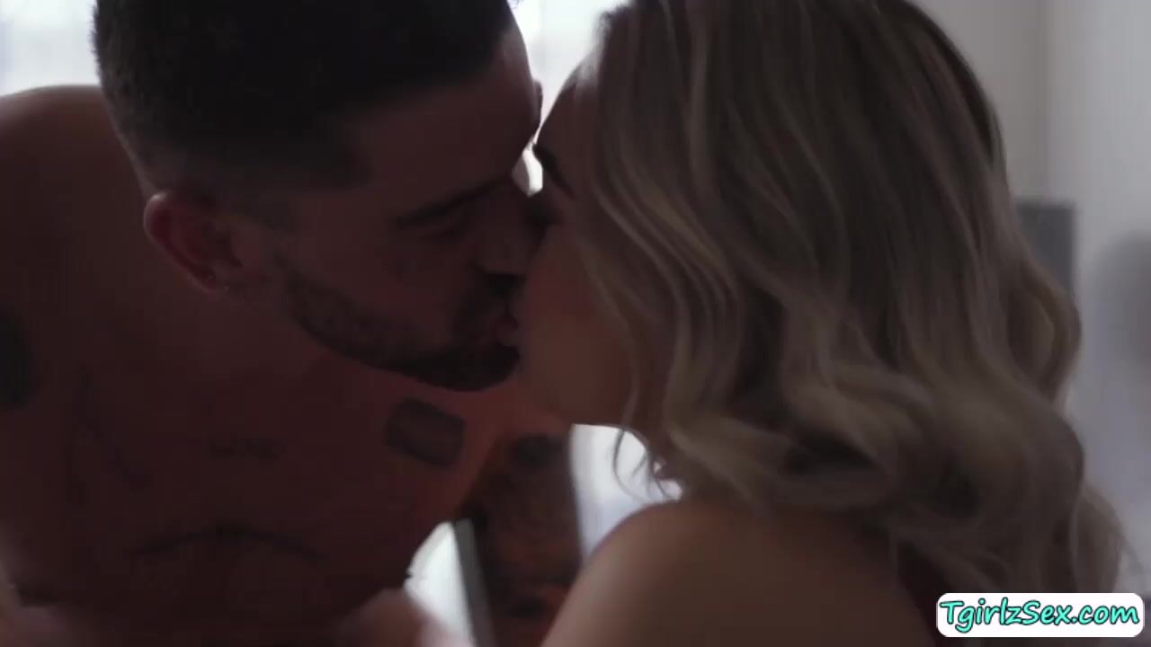 Smal tits yet beautiful transsexual babe Emma Rose teases hunk straight guy Chris Damned kissing passionately while stroking his big hard cock.The blonde shemale bends down to deepthroat blowjob before he anal barebacks her sexy asshole missionary and more.