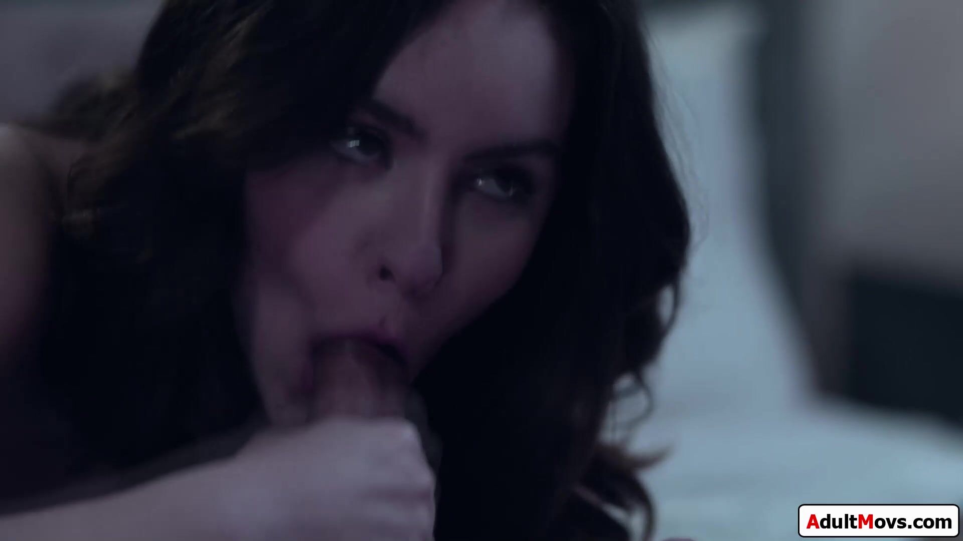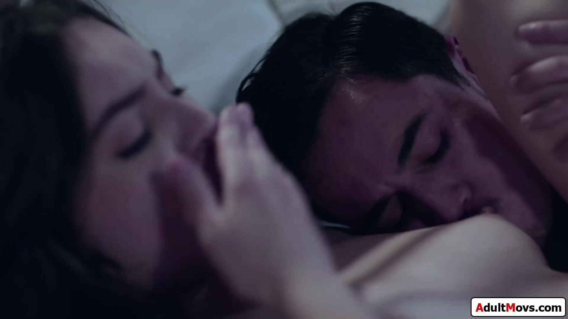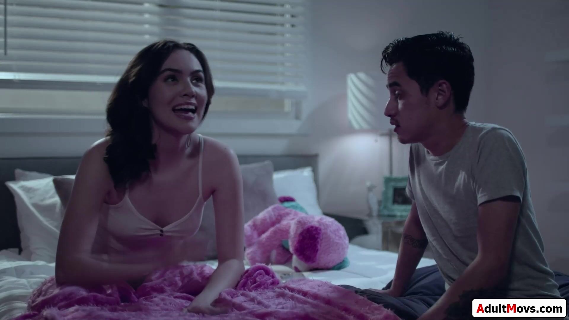 Guy ends up in his gfs stepsisters bedroom when trying to sneak out.The brunette babe is super horny and she will help after shes licked.He kisses her and gives her oral.She deepthroats his big cock and he bangs her pussy before eating her out again