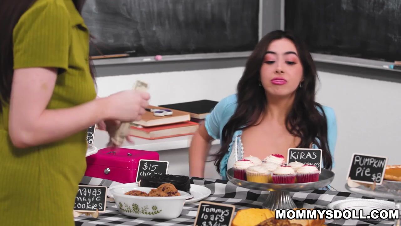 As Serene continues to eat out Chloe, the pleasure helps Chloe to become less grumpy and more approachable. Before long, Chloe starts to attract eager customers who line for some tasty baked goods, and none of them realize that Serene is enjoying her stepdaughter's tasty pussy underneath the table!