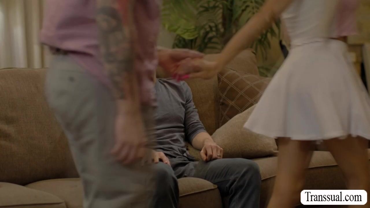 Trans Asian Belle and her boyfriend visit their friends house.After that,they decide to swap their boyfriend and do anal sex.She starts kissing the boyfriend of her friend and she then throats his dick and lets him fuck her ass.