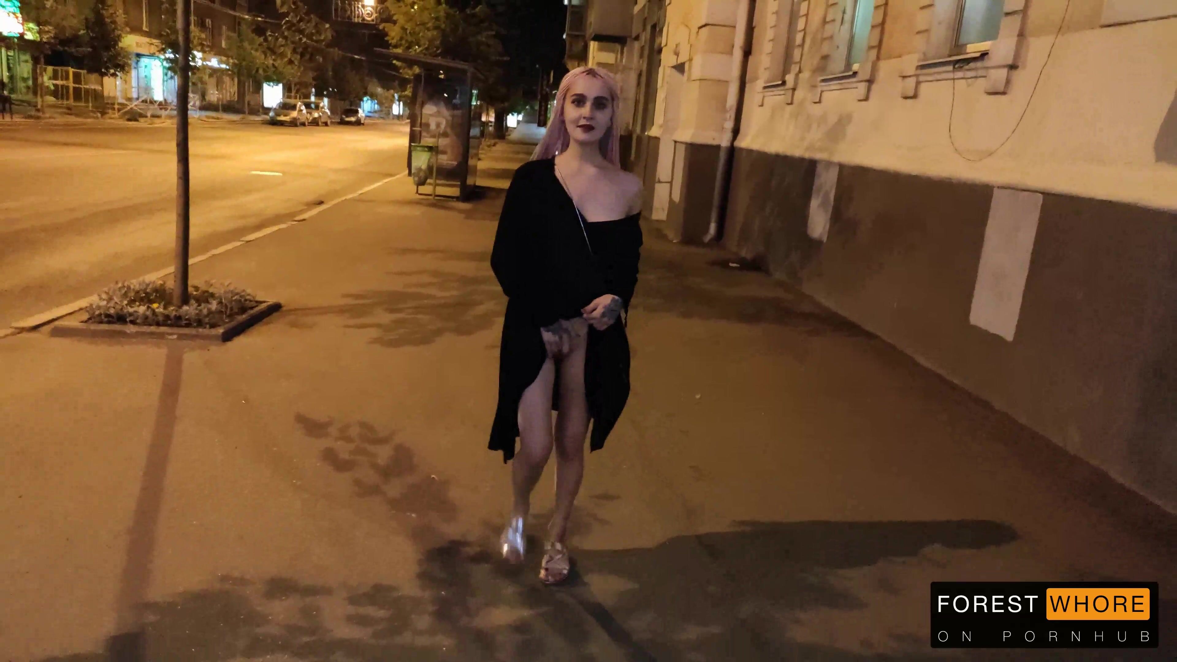 Forest Whore - Night naked walk, licking public toilet and public fetishes