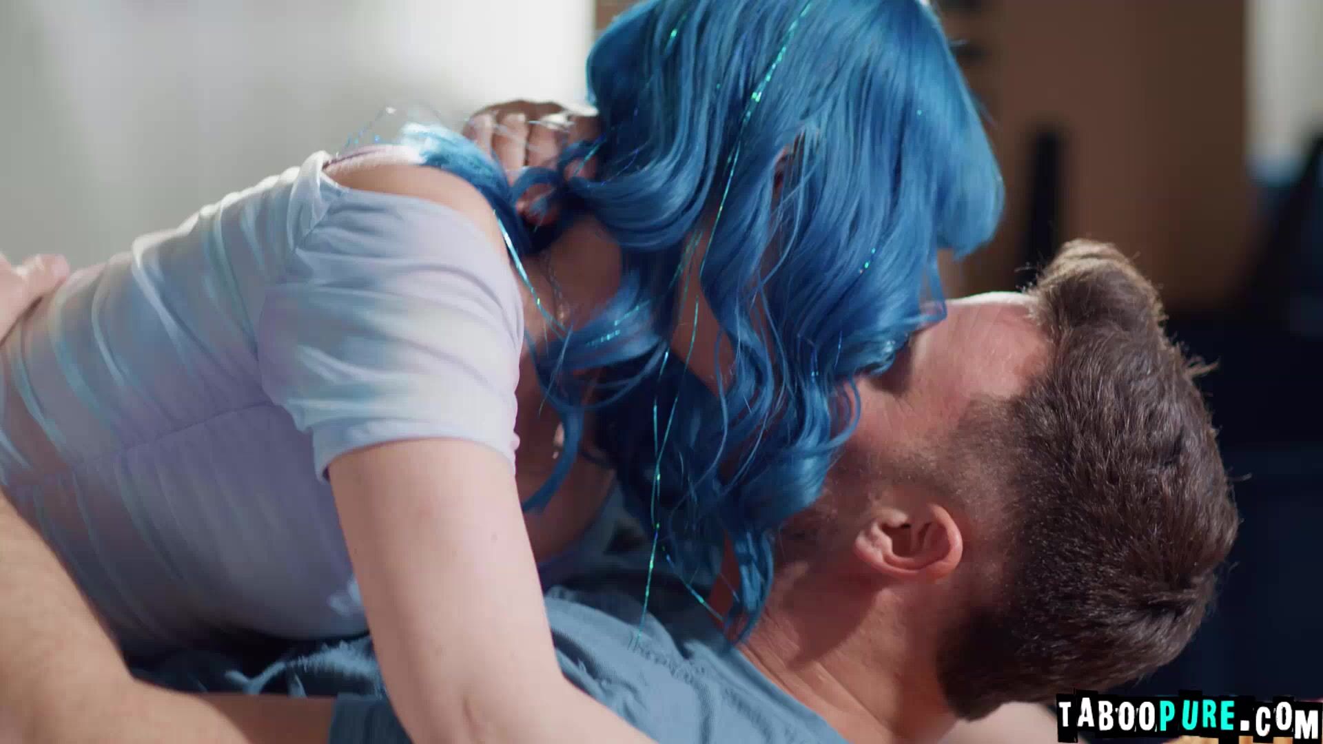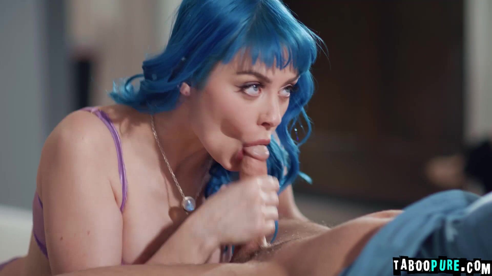 Blue haired curvy Jewelz loves sucking huge angry dick