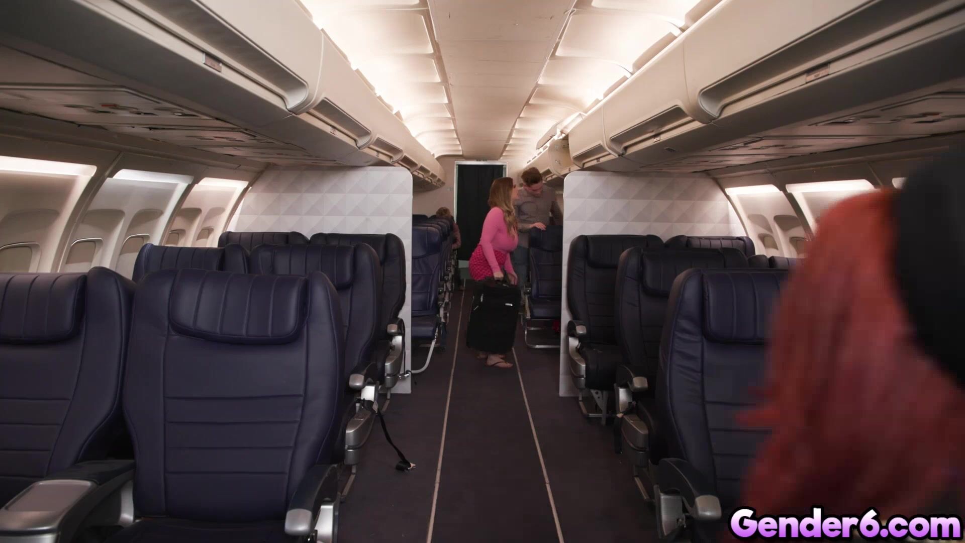 While they are waiting for their passengers, transgender Ariel Demure is giving their captain a good blowjob. After that this TS flight steward goes inside to help the passenger but one of them saw her trans dick and suck it. Soon, Ariel have one dick and one pussy for a threesome sex