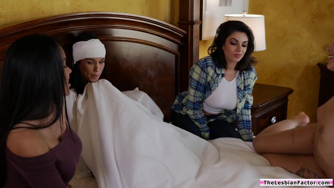 Big tits lesbian is making out with her latina bff.Their friends left the room as they continue kissing and caressing each other.She goes first sucking her nipples and then masturbates her clit.The busty latina licks her pussy while she facesitting.