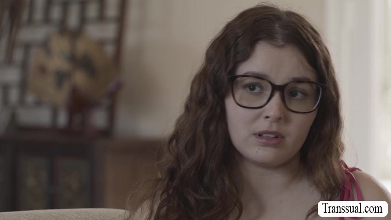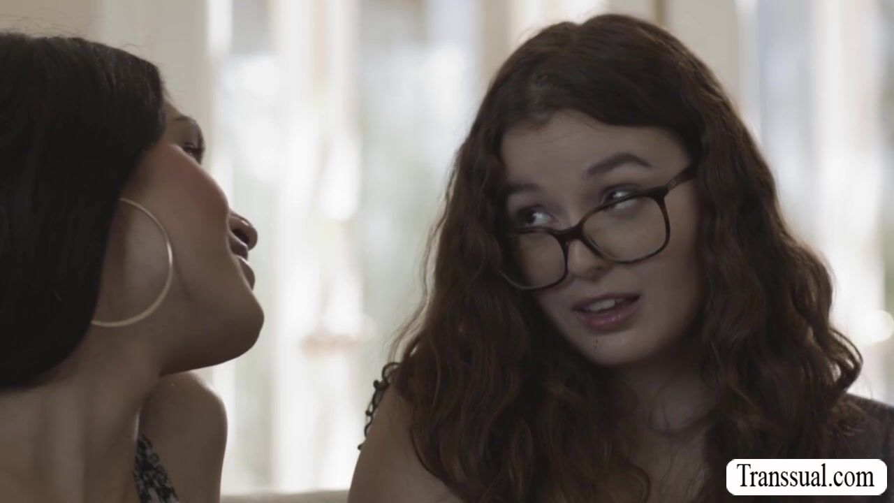 Nerd teen Leana Lovings meets the TS girlfriend of her bestfriend.They start kissing on the couch and she lets her lick her tight pussy first to makes it wet.After that,she sucks her shecock in return and lets her fuck her wet pussy so hard.