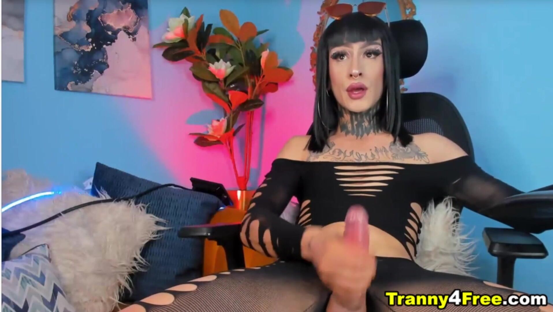 Goth shemale jerking on cam