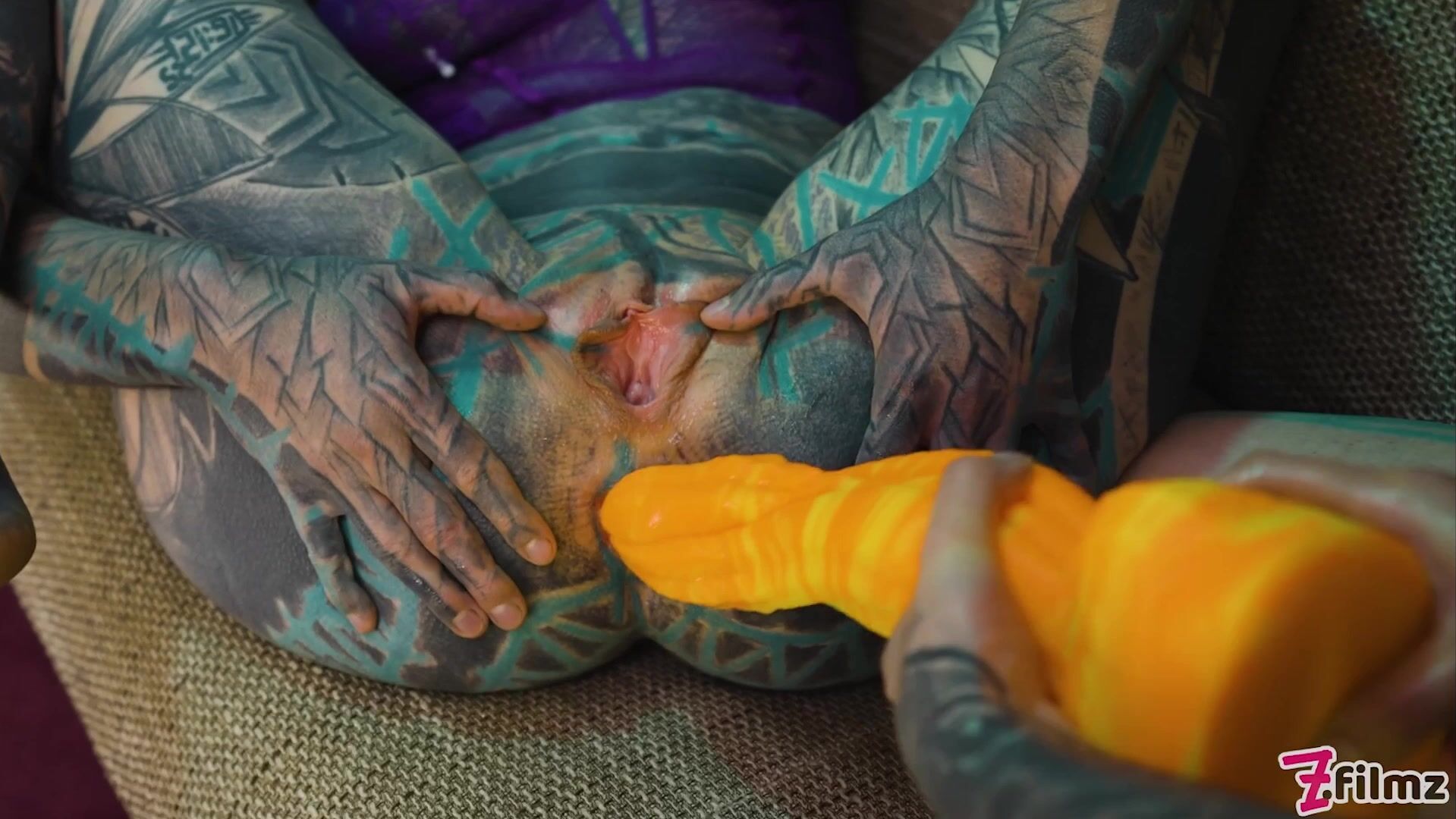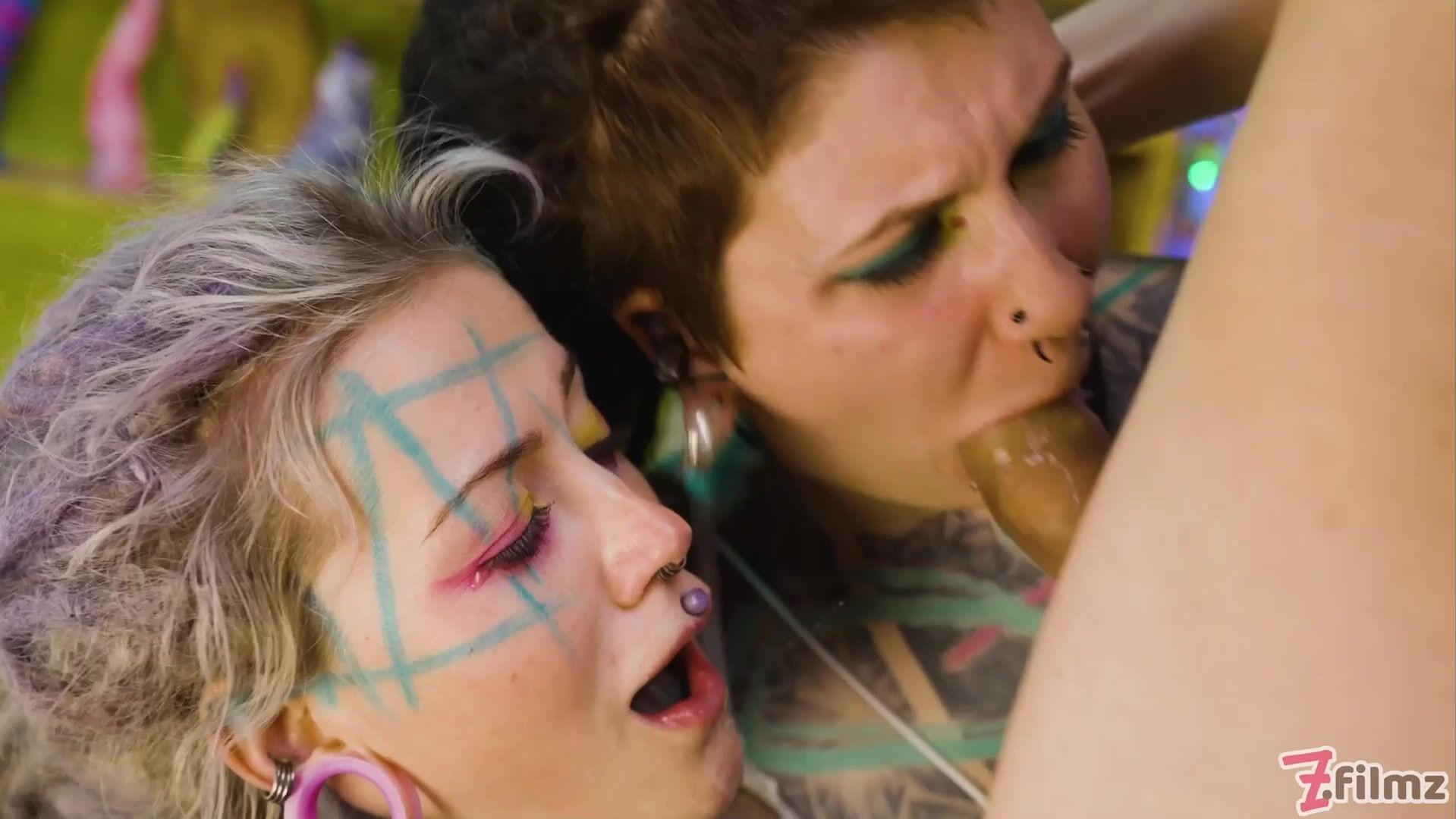 Anuskatzz and her also heavily tattooed friend Iluz get hard fucked by Illuz's boyfriend, Paracoz.
