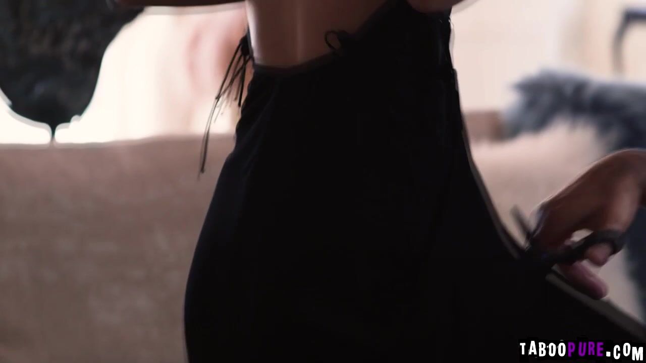 Khloe Kingsley is trying to leave wearing a revealing dress. Her stepdad Charles Dera is adamant that she can't go out dressed like that. Charles uses a scissors to cut her dress off. This seems to give Charles an idea, he'll let her wear whatever she wants if she will fuck with him