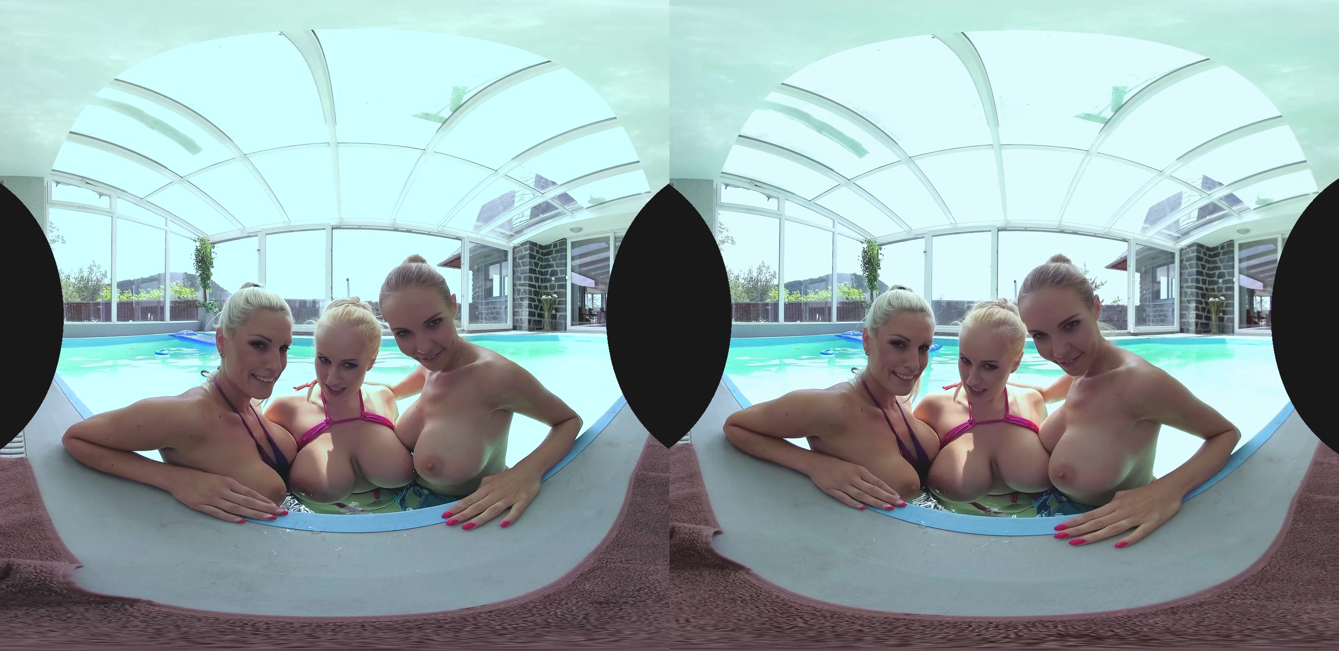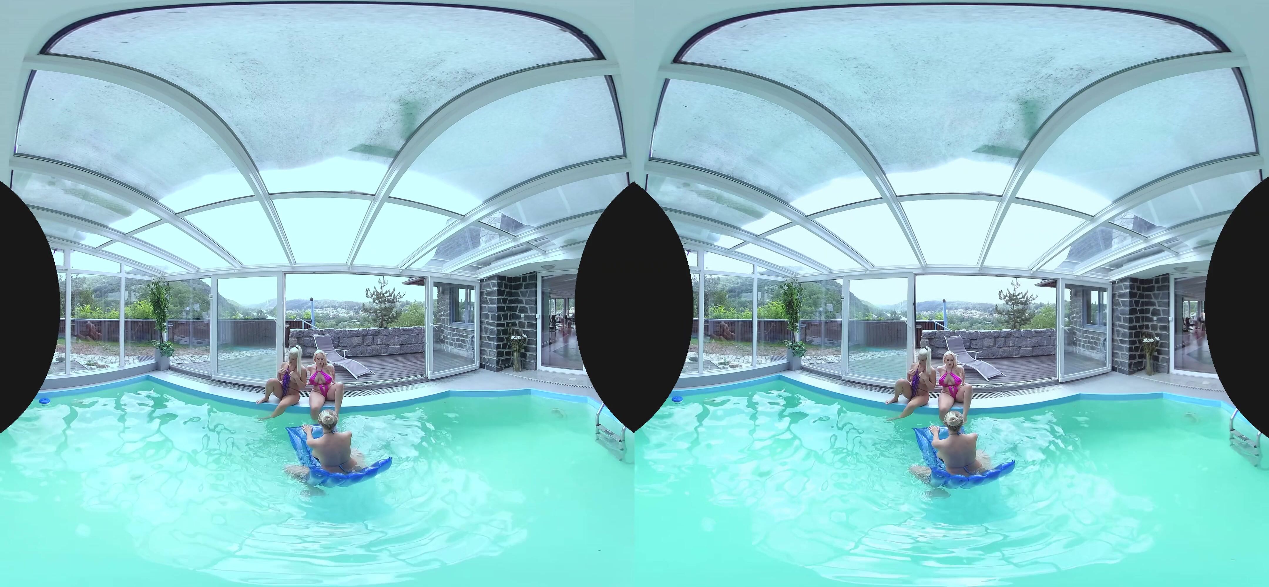 Angel Wicky, Blanche Bradburry, Florane Russell - Foursome With Big Tits And A Pool