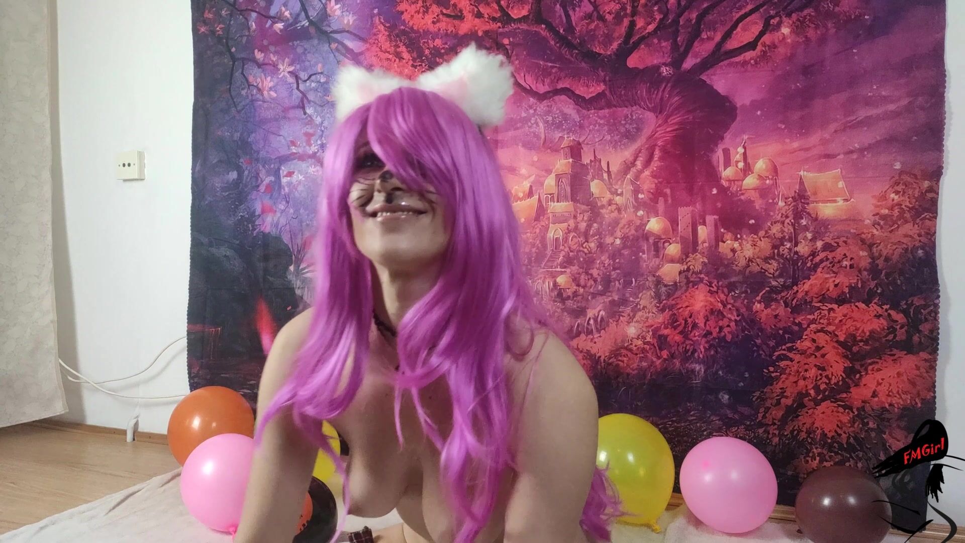 Fmgirl - Sweet Kitty Struggling To Tie Balloons