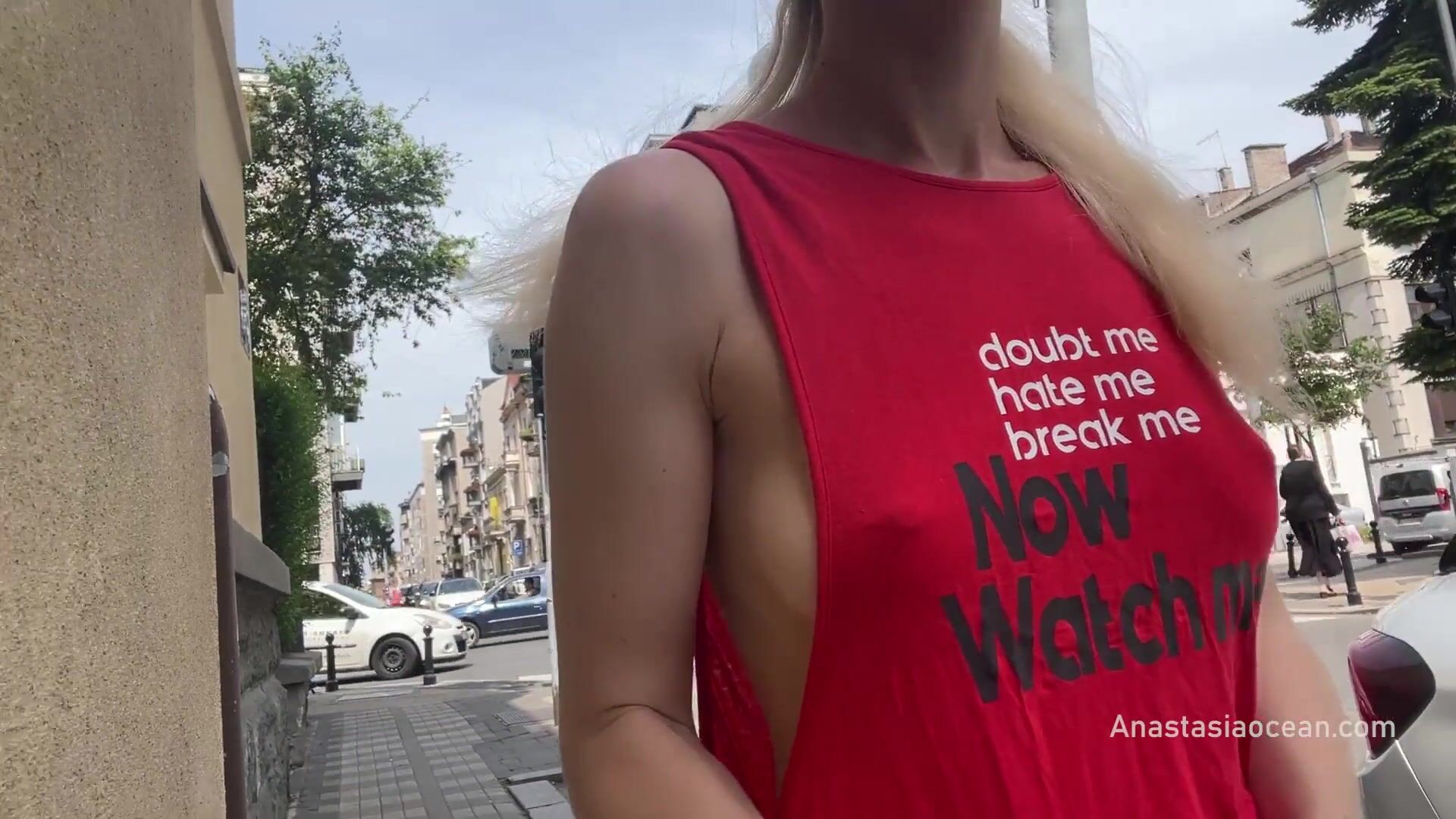 Anastasia Ocean - Braless walk in city. Flashing piercing nipples in public.