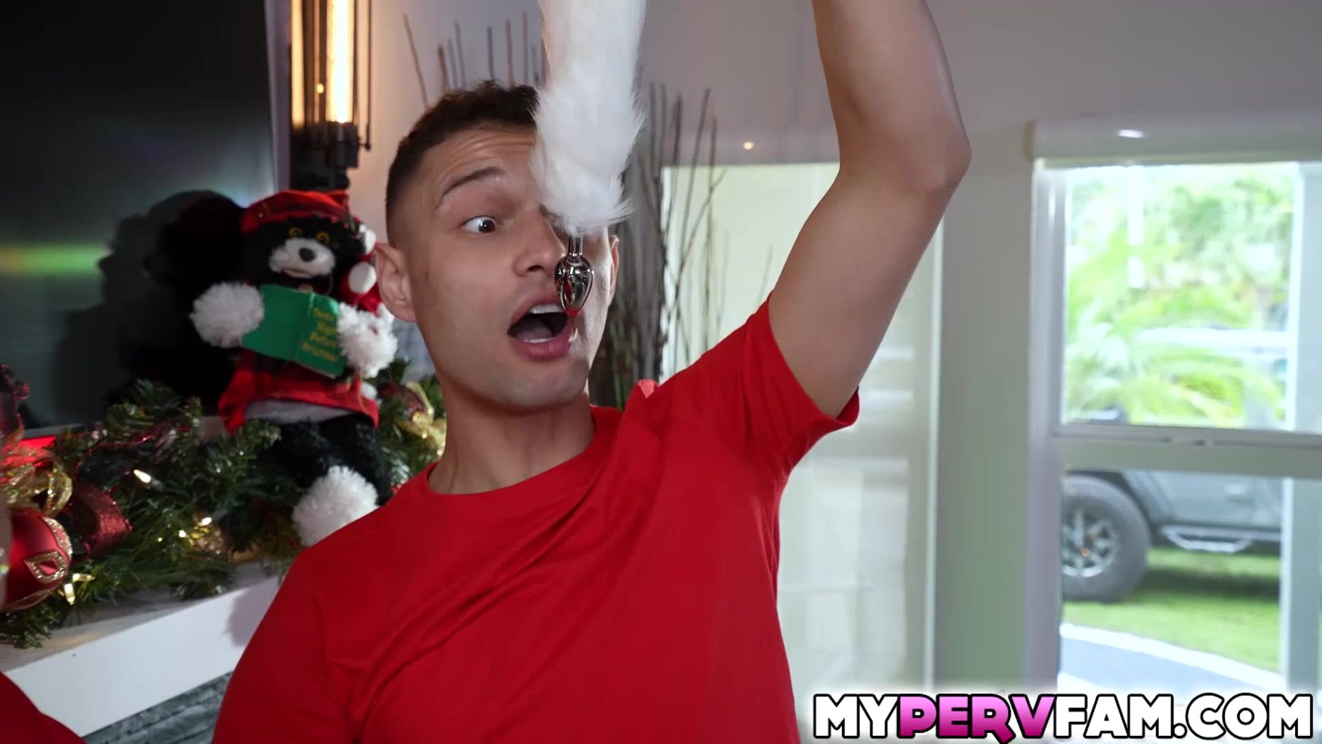 Watch what Natasha Nice and her stepson did after opening some Christmas gift after Natasha gets a butt plug tail she starts using it while her stepsons peeking on her until he takes it from her drawer and use it to get more of Natashas attention