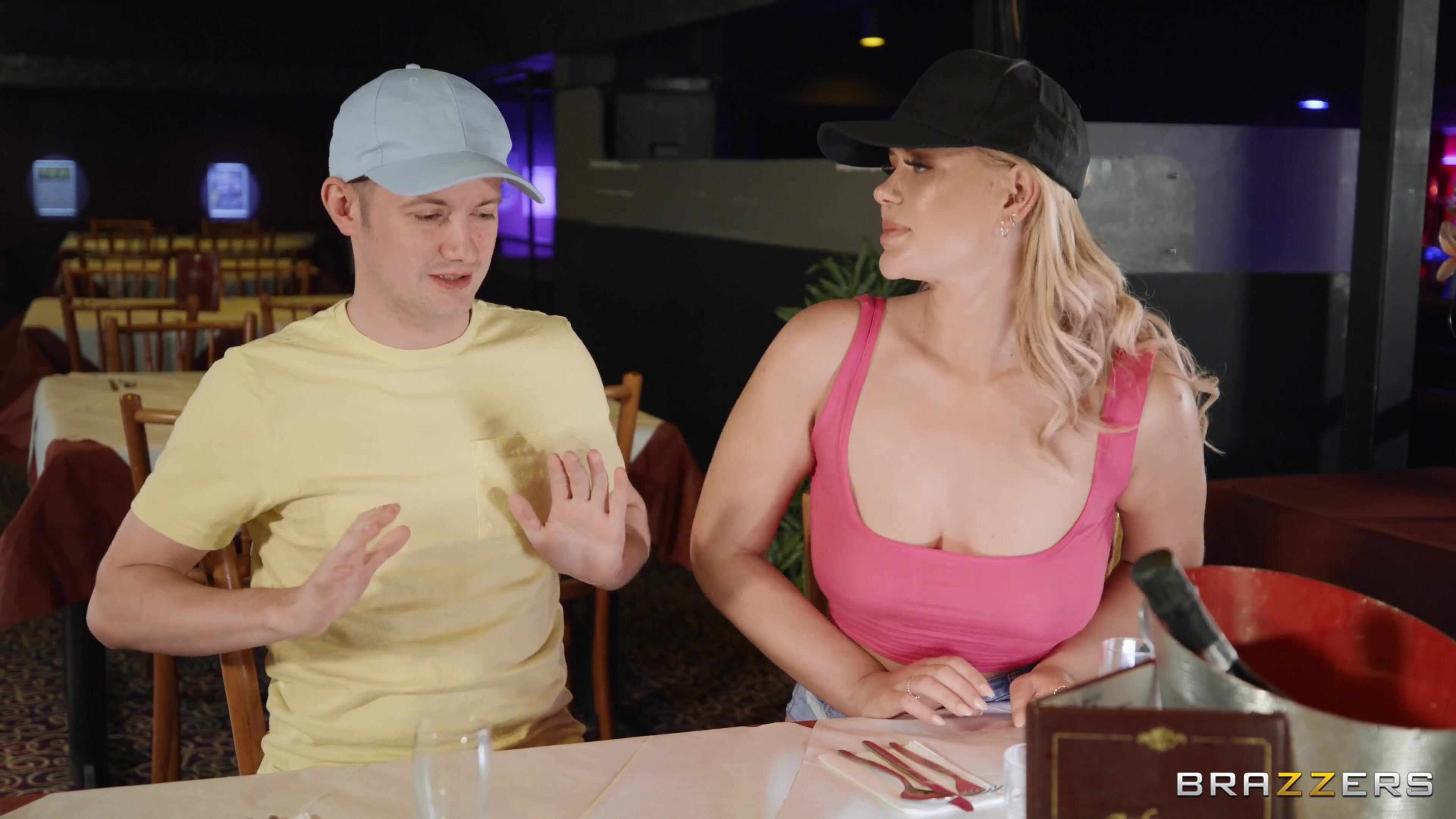 Young and rowdy couple Gina Varney and Sam Bourne sit down at a restaurant. Wanting to get naughty, Gina gives Sam a handjob under the table to get him ready to fuck... only Sam cums too fast and dirties the underside of their table. While Sam cleans up, Gina turns her attention to the sexy waiter (Danny D), first sucking his dick behind a table, then taking him into the bathroom to fuck after Sam almost catches them. A fight breaks out between Sam and Danny, after Sam sees the obvious cum stains on Gina's baseball cap!