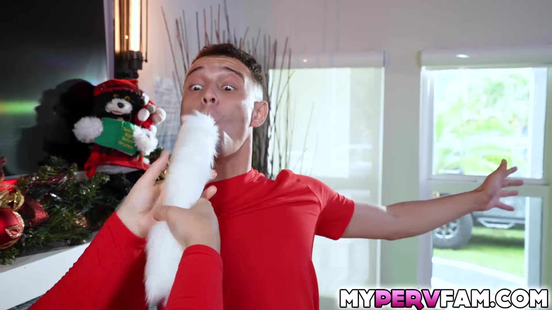 Watch what Natasha Nice and her stepson get after opening some Christmas gift after Natasha gets a butt plug tail she starts using it while her stepsons peeking on her until he takes it from her drawer and use it to get more of Natashas attention
