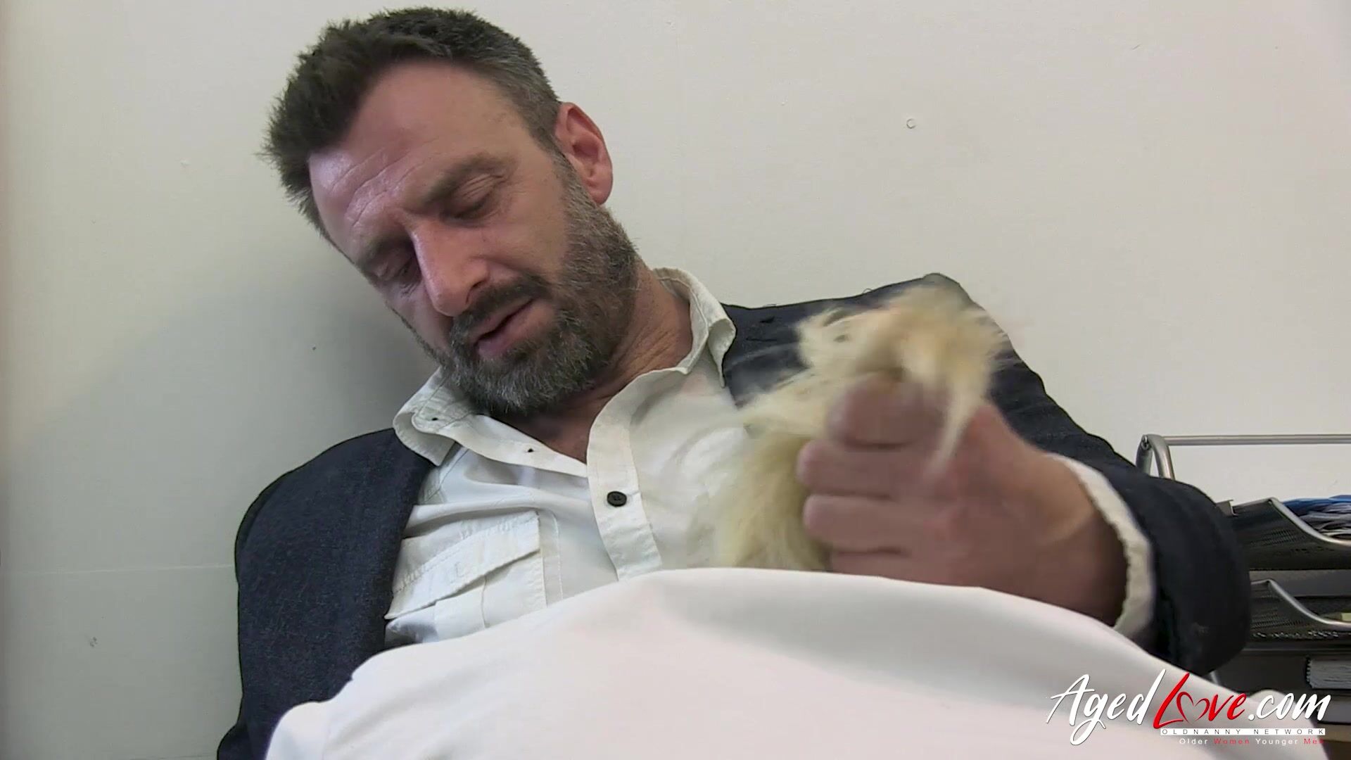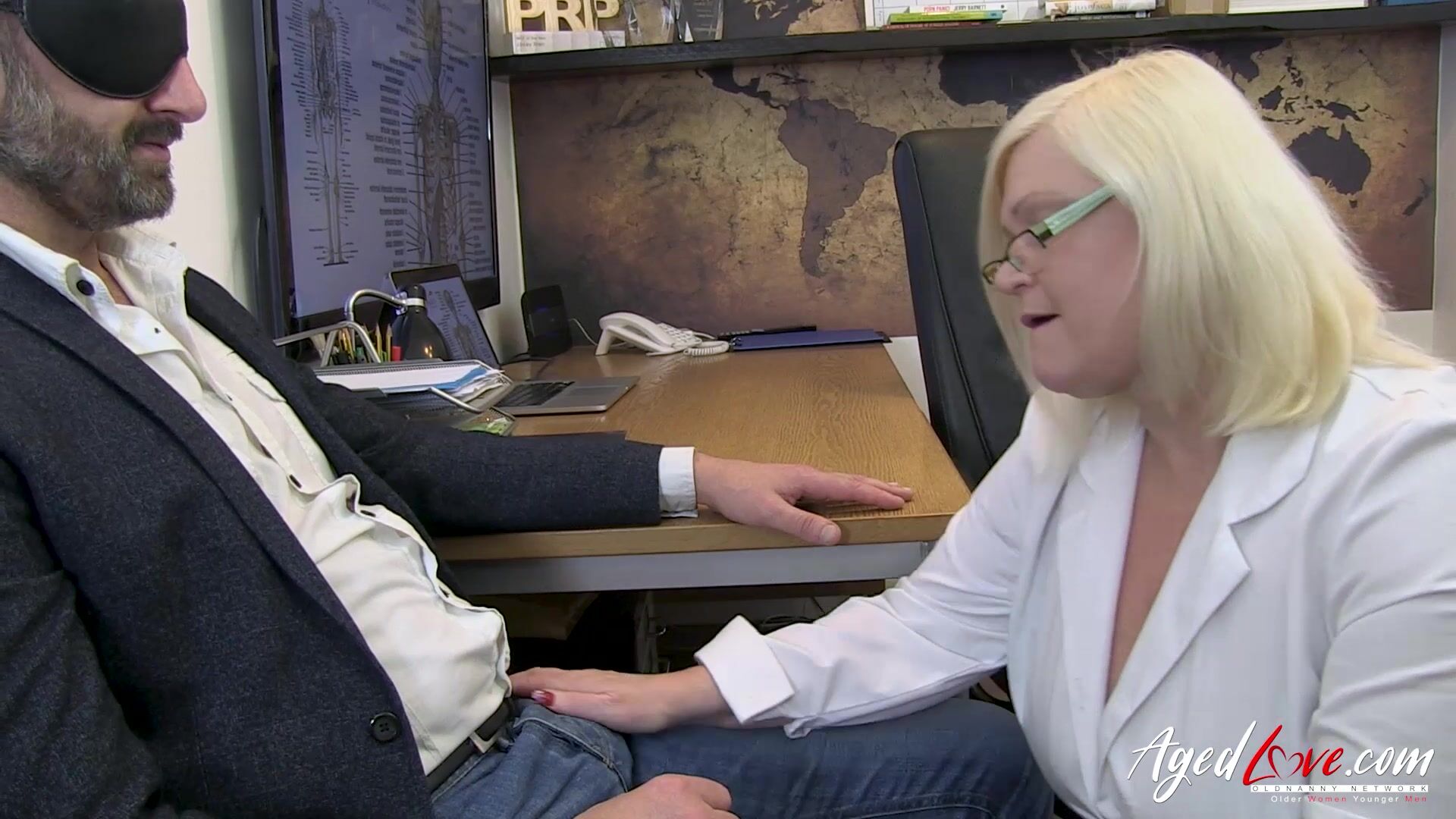 Lacey Starr begins treating Pascal White's hypersexuality with her mouth on his big cock