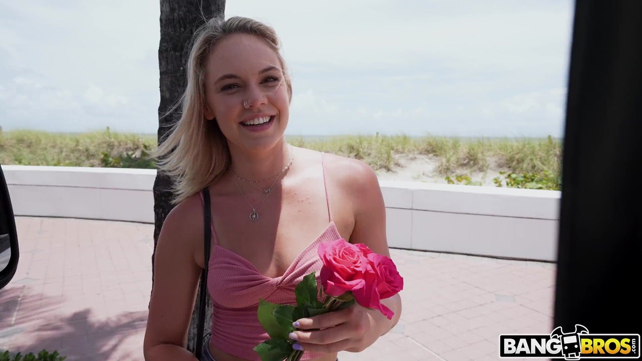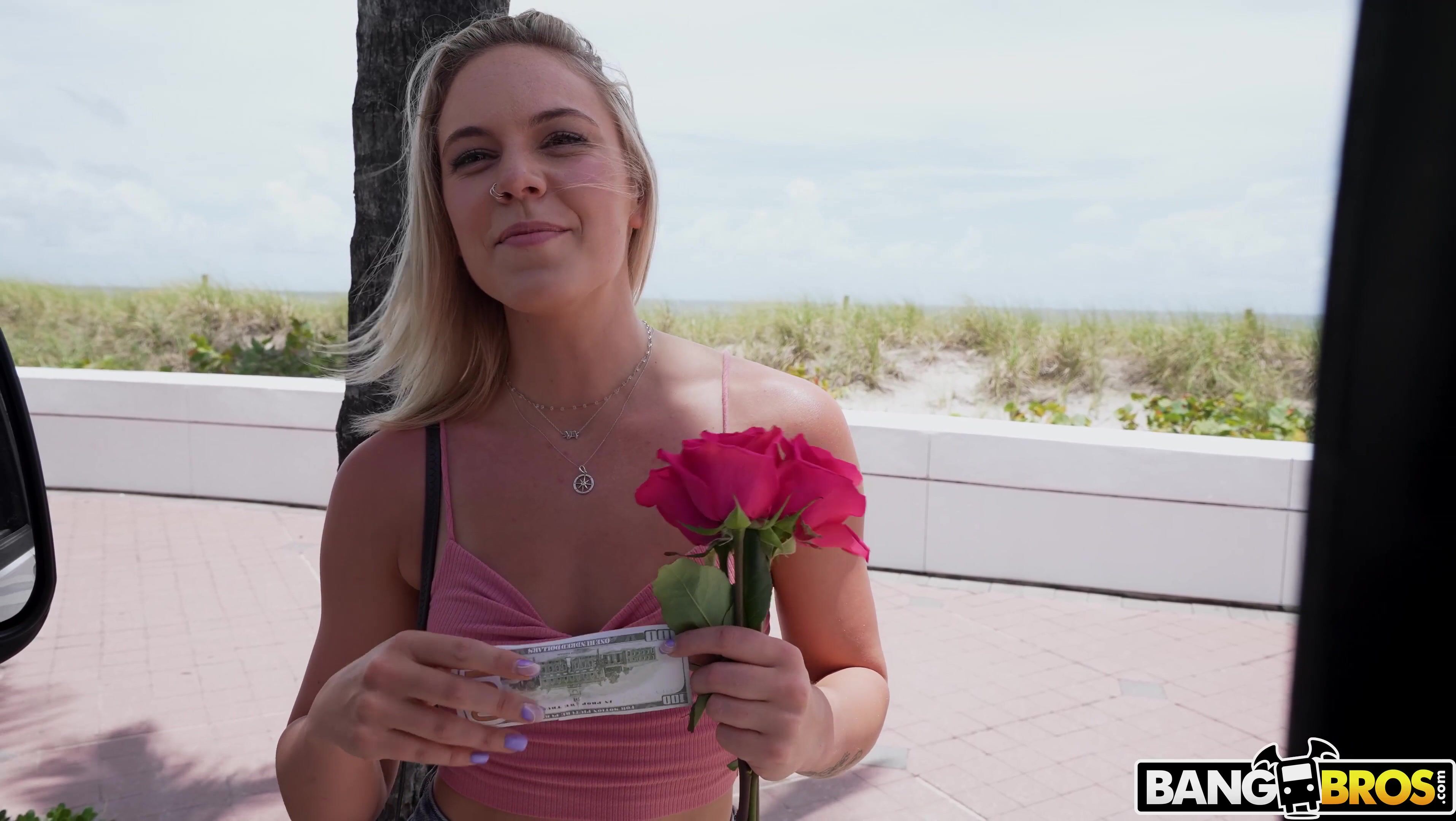 Kelsey Kane has the perfect body. She's skinny, pretty tall, blonde, and the best of it all, a nice bubble butt. We see her walking on the beach by herself so we decided to give her roses. But now she has to play fuck, marry, kill with our crew. And lucky for her, she chose our boy Jay to fuck, and he's ready for it. We entice Kelsey to come in the van showing her our wad of cash we're willing to pay and she happily climbs in. She just came back from the beach and her ass cheeks were nice and red. Her bubble butt is mesmerizing to look at and the way it perfectly curves when she bends over makes my jaw drop. We love her attitude too, she came in ready to fuck. Kelsey can fit Jay's whole BBC inside her tight little pussy and the way she moans makes me crazy! She even screams every time she cums, it makes me want to jack off right now!