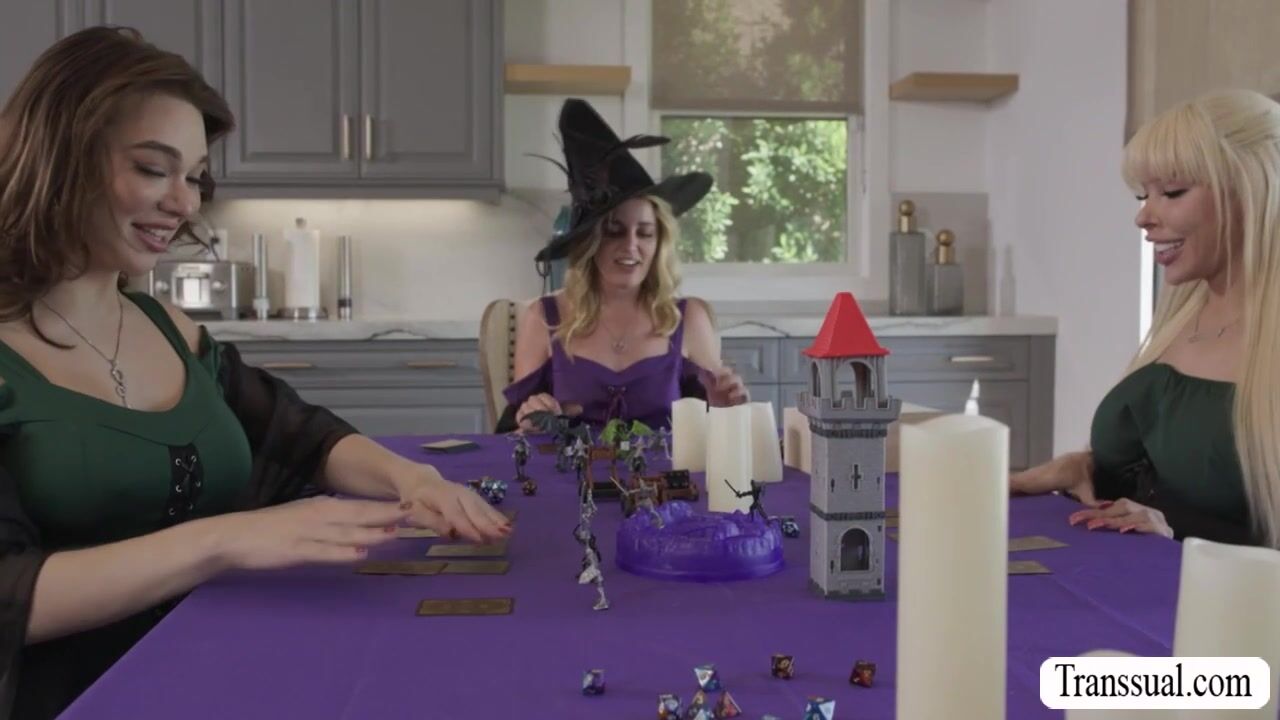 Teen blonde gets fucked by two busty shemale