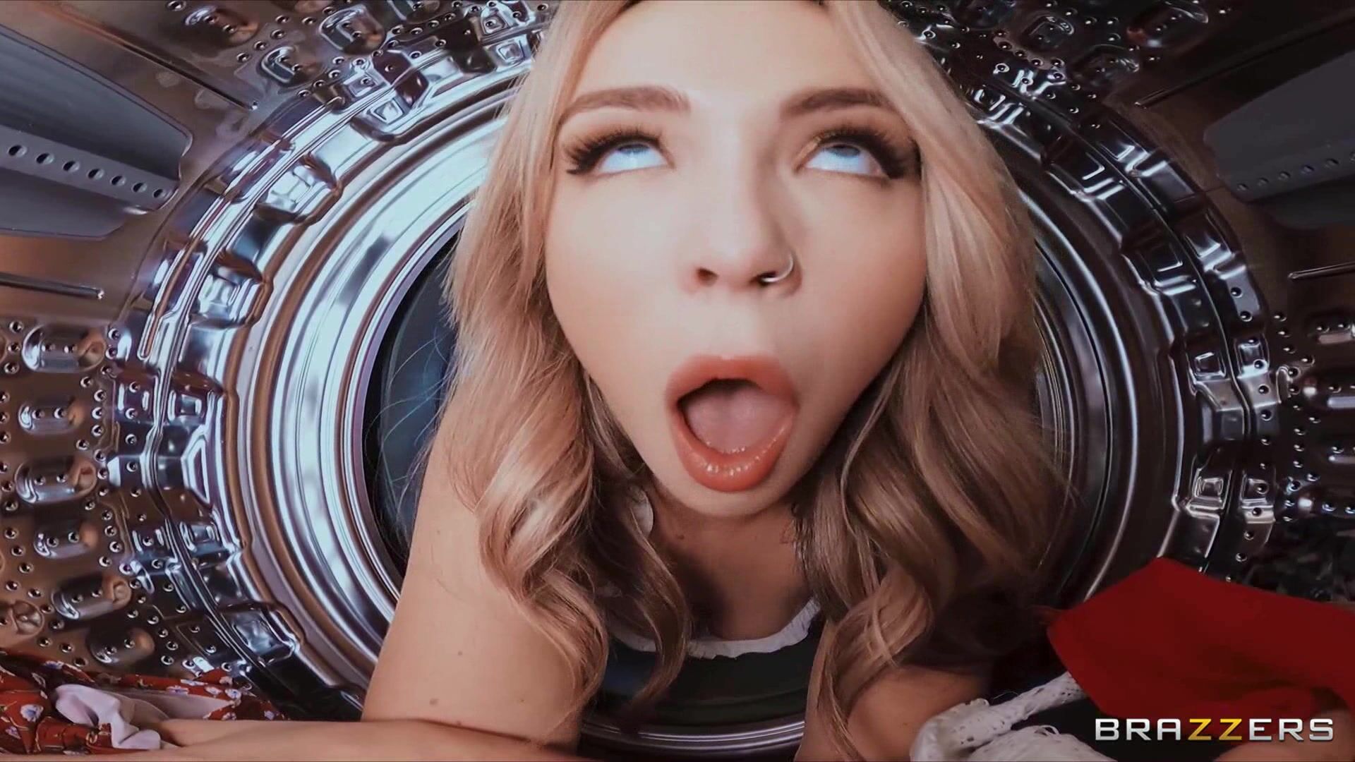 GF stuck in the washer while her stepmom seducing me