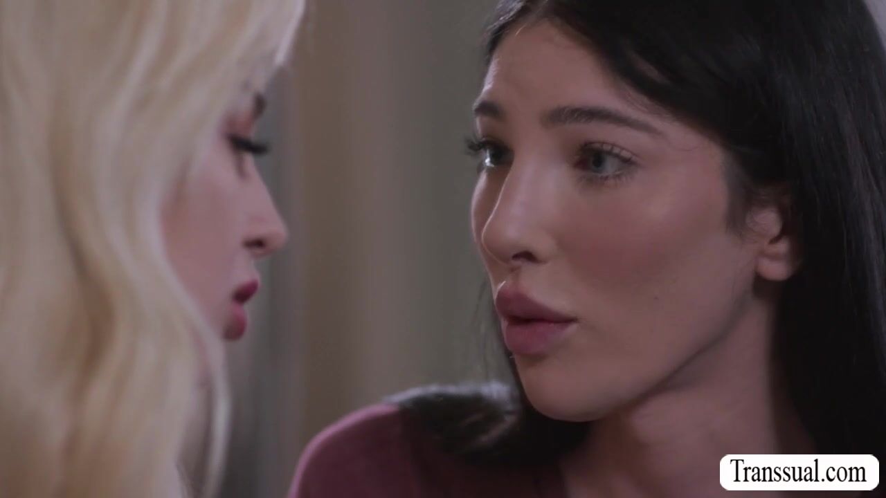 Cute blonde Lexi Lore and TS Ava Holt are on the couch kissing each other.After that,Ava licks Lexis pink pussy to makes it wet.Next is,Lexi throats Avas hard shecock passionately and rides it after.Go to Transsual.com for discount!