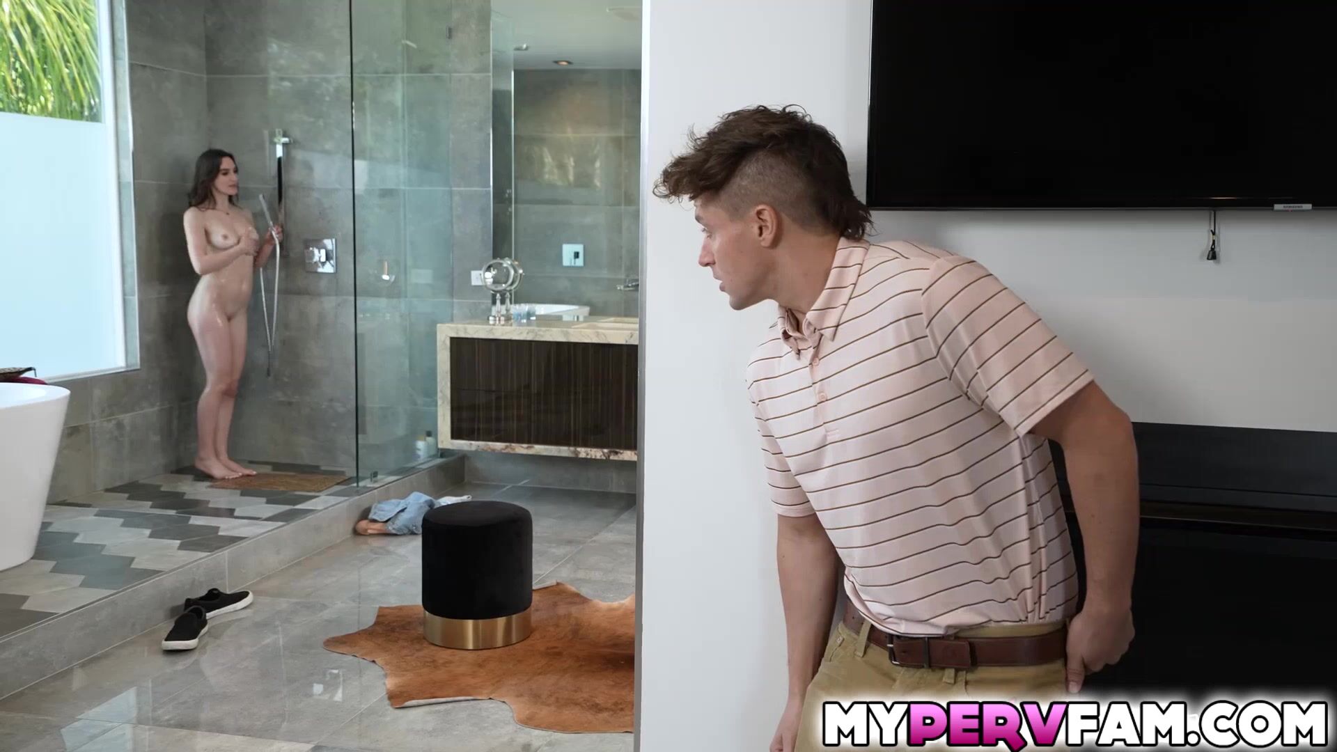 Sofi pulls Jays dick out and is impressed with her stepcousin big member She begins to suck his cock right there in the bathroom Sofi climbs on her stepcousin and rides his hard knob until her pulsing pussy is soaked with her own juices