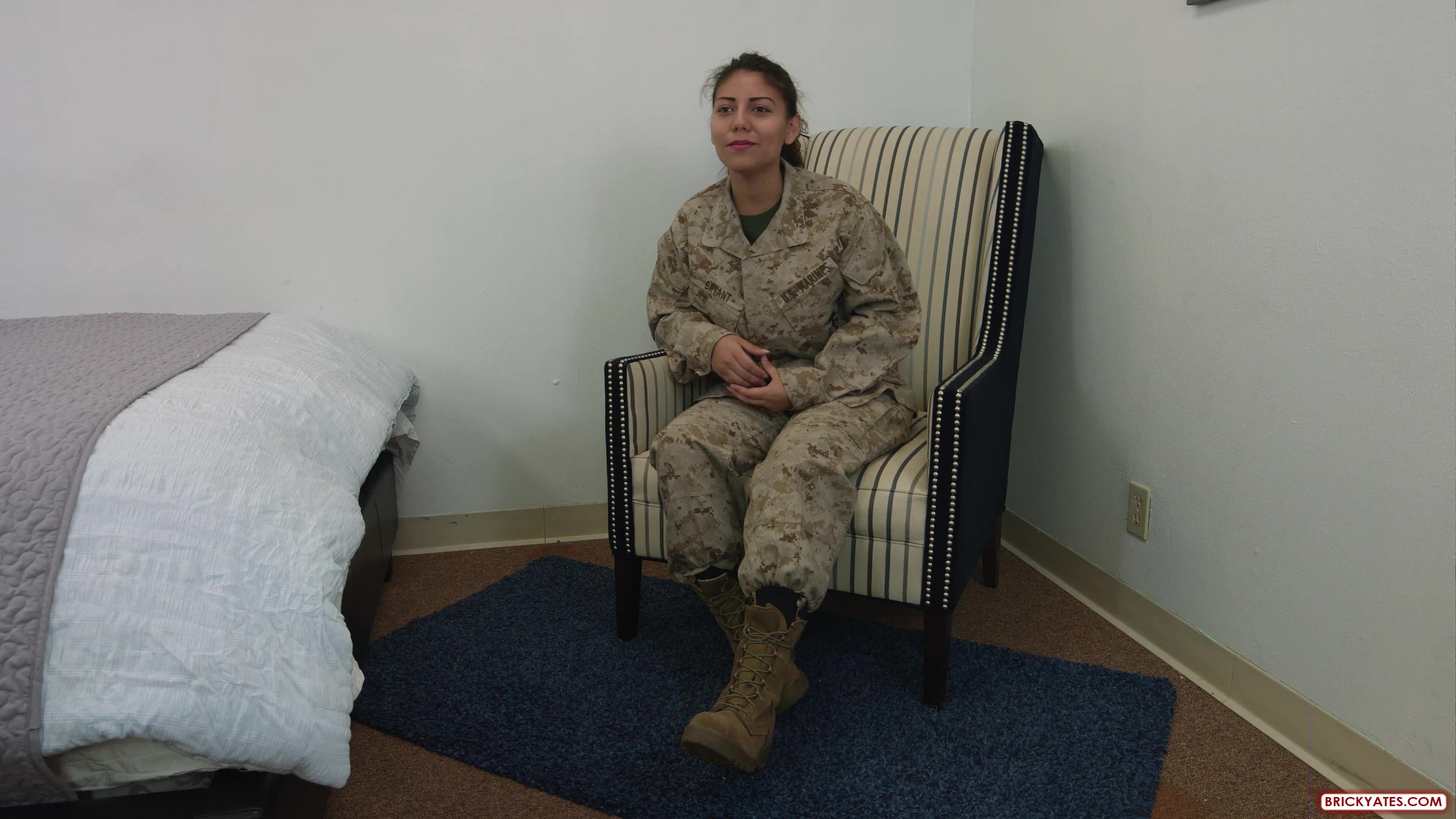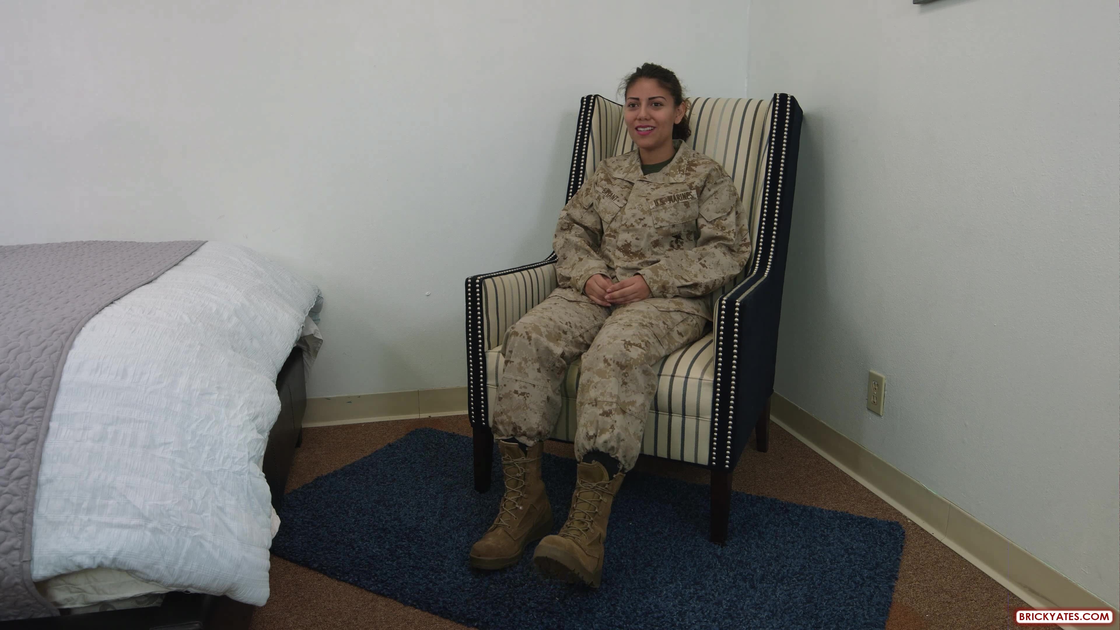 Nataly told her friend Mia about our site and she wanted to try it out. She has a pretty heavy New York accent so she is a little different than the typical San Diego Marine. Mia joined the Marines because her parents always told her that the military was something for guys and not girls. Well her role on my website is definitely for girls! While she was in boot camp she had sex with another girl and it wasn't because she liked girls, she was just super horny and that was her only option. When Mia started sucking my dick, I almost came immediately. Her lips and tongue were probably the softest I have ever felt. Then when she started licking my balls, I almost lost it. I literally couldn't even stick my cock inside her because I would cum. She wasn't on birth control either so I had to spray my cum all over her face, then fuck her with a condom so I didn't get her pregnant. Sad face. I stuck my thumb knuckle deep in her asshole while I was fucking her and it seemed like she liked it so I tried with my dick but she wasn't having it.