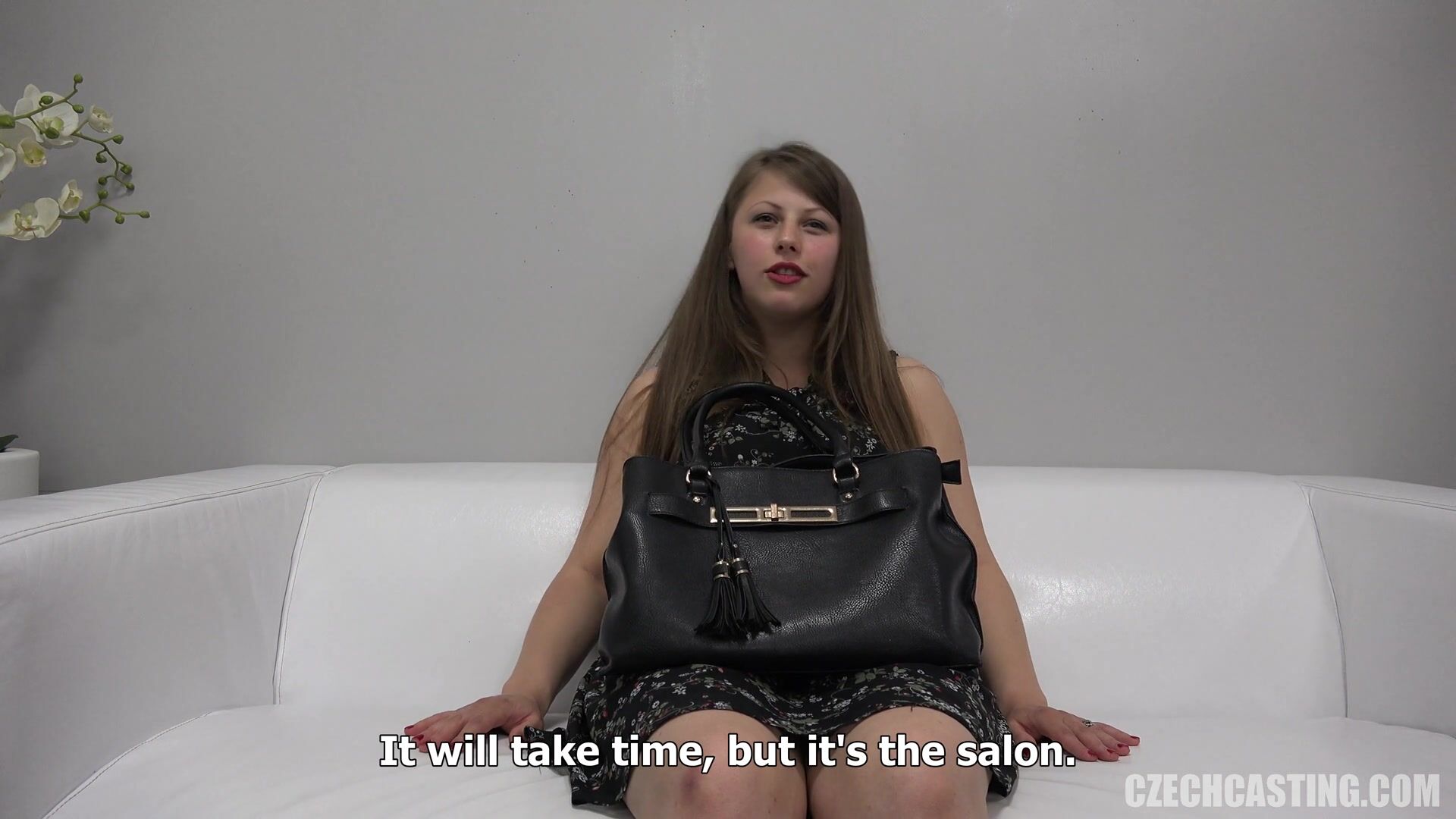 There is another genuine amateur sitting on our infamous white couch. Vita is girl well grown and busty. Freshly graduated brunette dreams about her massage business, erotic one, of course. She likes oiling men's cocks impatiently awaiting the final eruption. Her best offer is the exclusive tit massage. Do you need an appointment? I bet her schedule will be fully occupied.