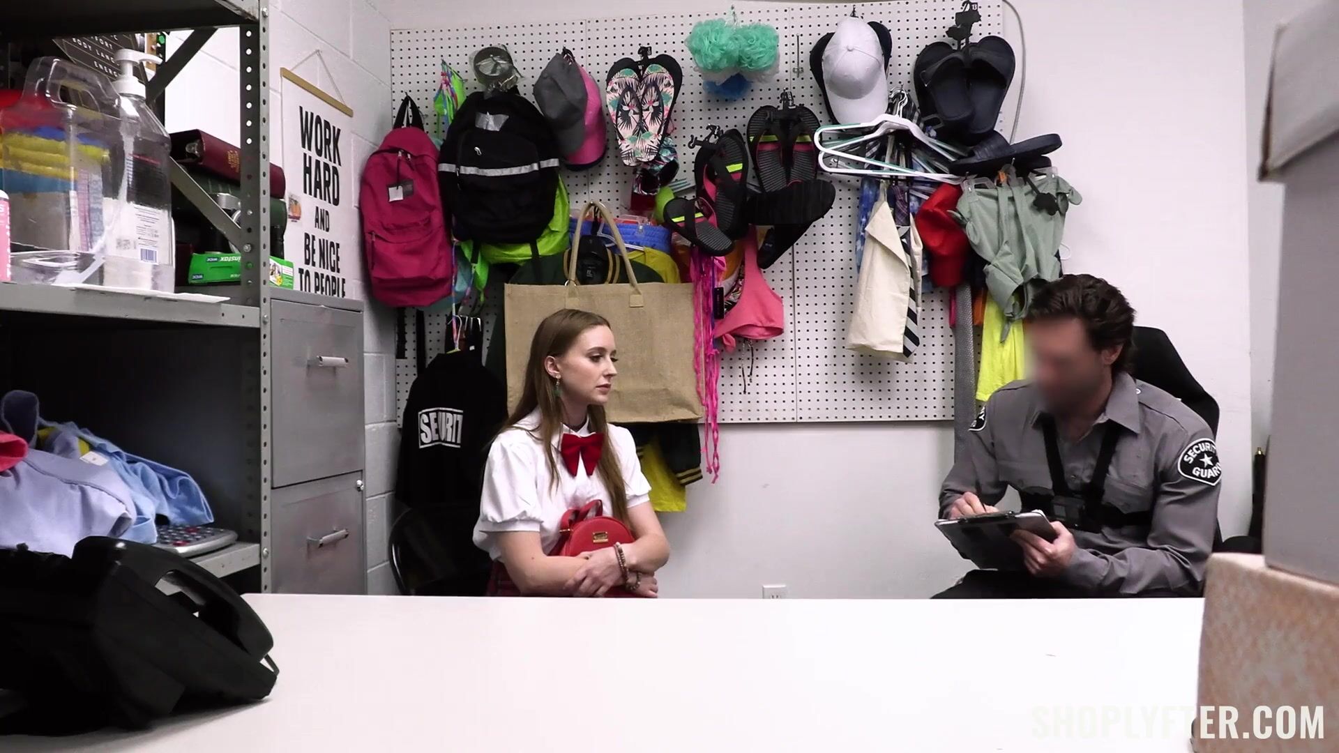 College student gets caught stealing from store. The only way out is to fuck the police guard.