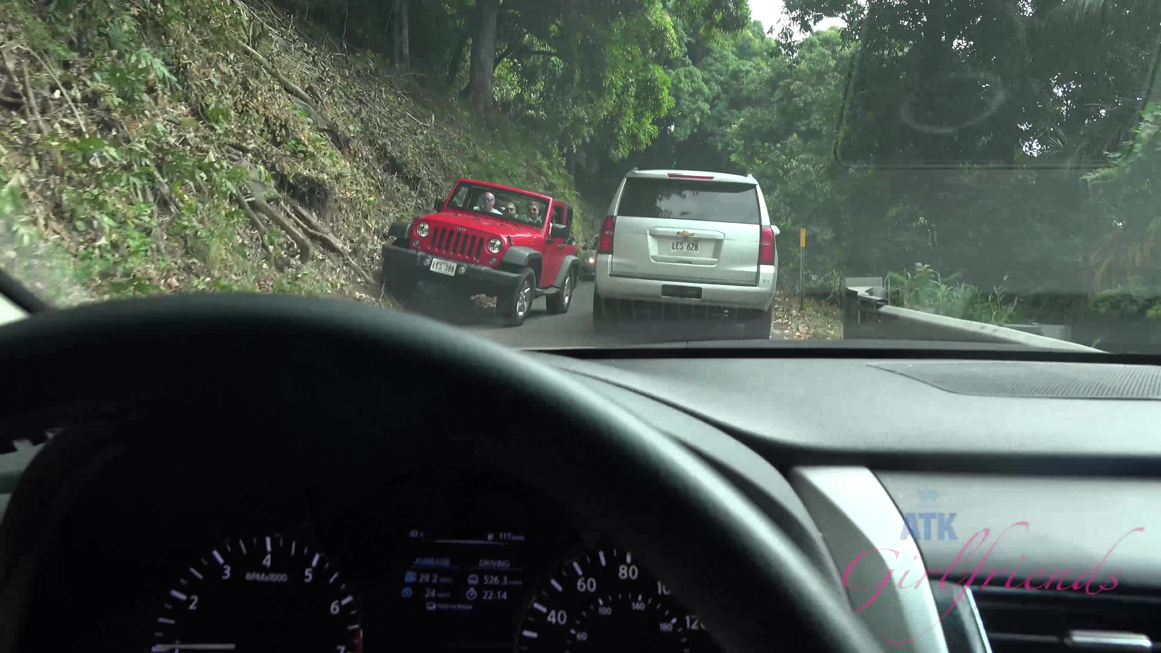 You take Alaina to some amazing sites along the road to Hana. She enters a black rock cave by the beach and gets her sweats a little wet. It's your last day there so you go back to the room early to be with Alaina one last time. She strips to reveal her cotton bra and panty set. She strokes your cock on her stomach so that you can study her soles. After she takes off her panties you can see a thick layer of juice stains on them. Before Alaina mounts your cock she gives you an oily footjob. You fuck her pretty hard and see her pussy gape in between positions. It's time to cum, and you saved up a good batch for her pretty face.