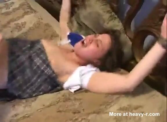 A teenaged Schoolgirl is on her way home when she is kidnapped by a guy, tied to the bed and forced