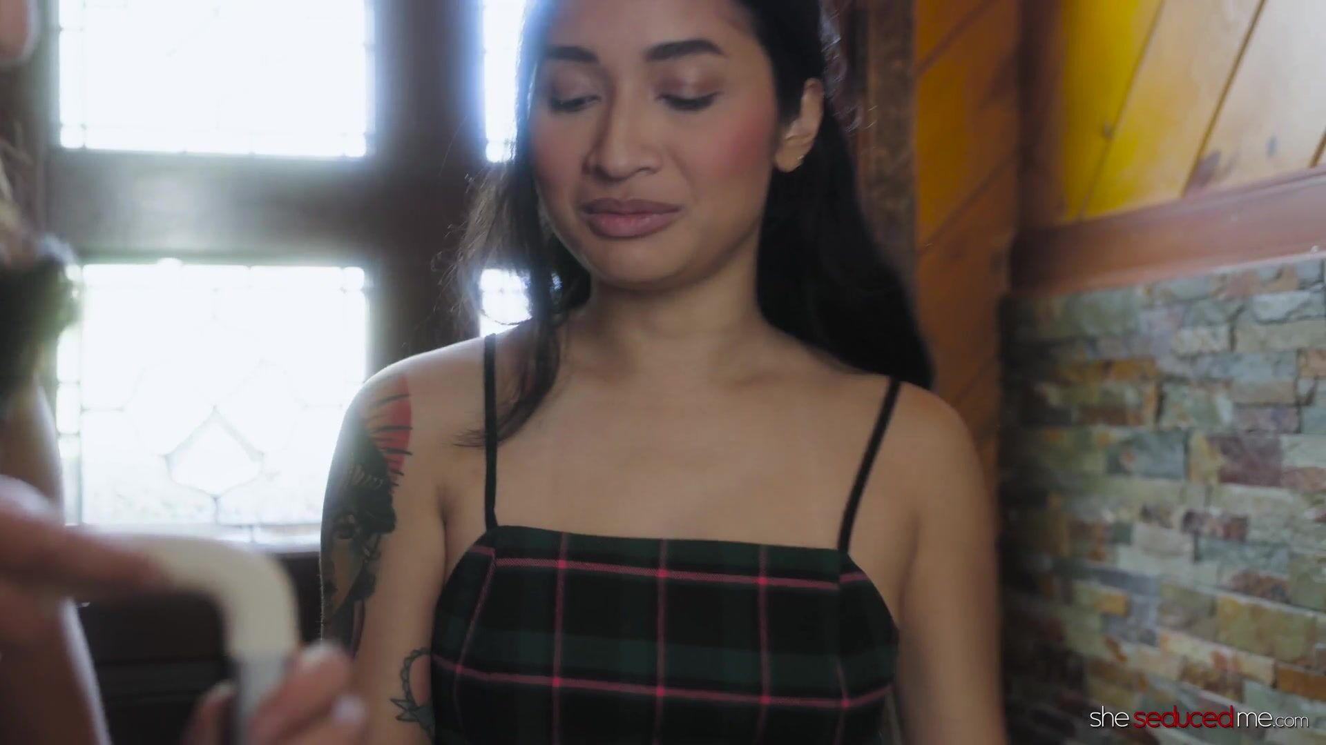 While Avery Black is wandering around her girlfriend's house, she caught her and her stepmother making out and more than enjoying themselves. She found it hot and liberating and so she got invited by stepmom Natasha to join the bedroom fun.