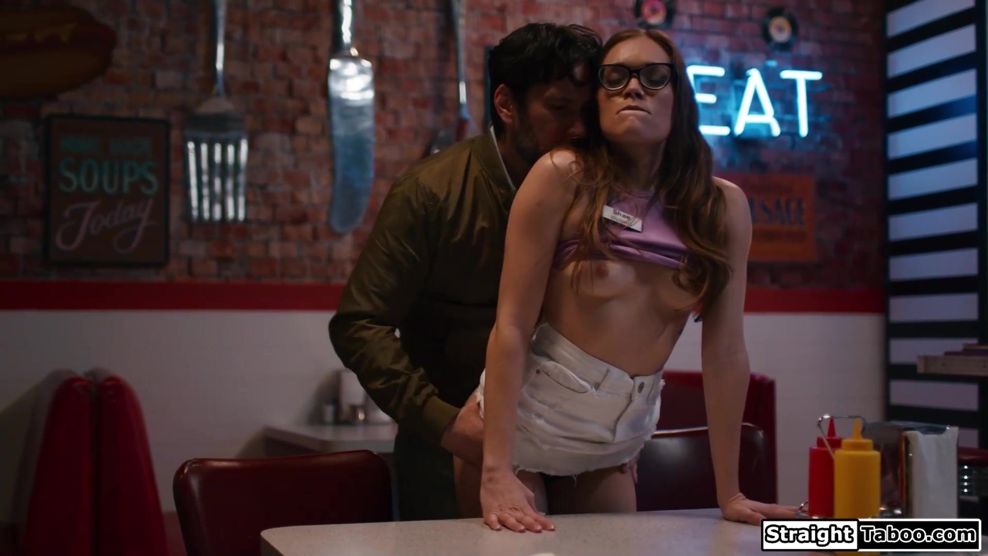 Petite Katie Kush finds out that running a business sometime means doing thing you do not want to do.Loan officer Tommy Pistol feels up her perky tits and on her knees the babe deepthroats his cock.The small boobs brunette rides on his dick