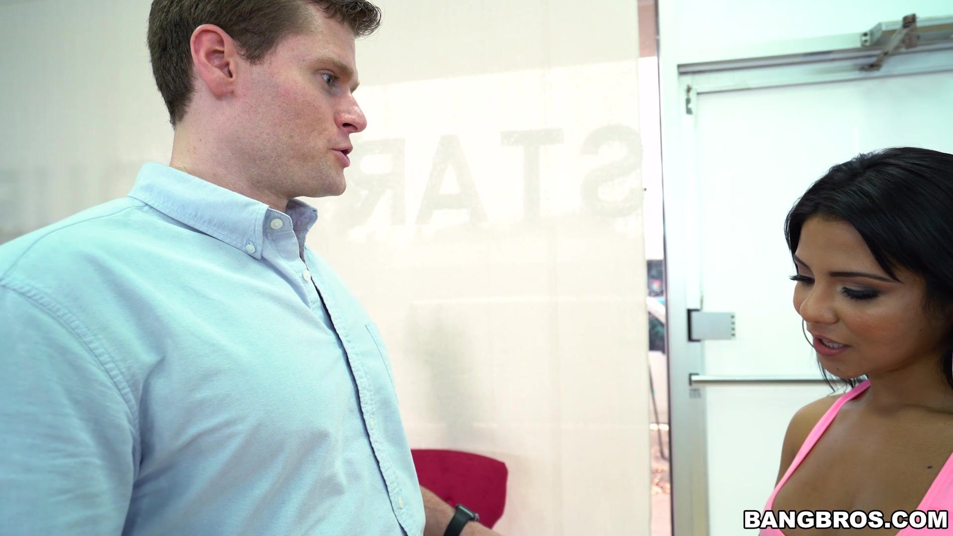 Clint decided to take salsa lessons. To his surprise, the instructor is the curvy Rose Monroe. After her husband leaves the studio, she begins by showing the nervous student how to properly stretch. He can barely keep his eyes off that big juicy Latina ass. Then she has an idea on how to get him relaxed. Going down on him! Talk about a dedicated instructor! Unfortunately, as she is giving him a great blowjob, her stupid husband walks in on them. After, he leaves in a fit of rage, Rose decides that she still needs to satisfy her lust. Don't miss this pounding of the one of the hottest asses in the biz.