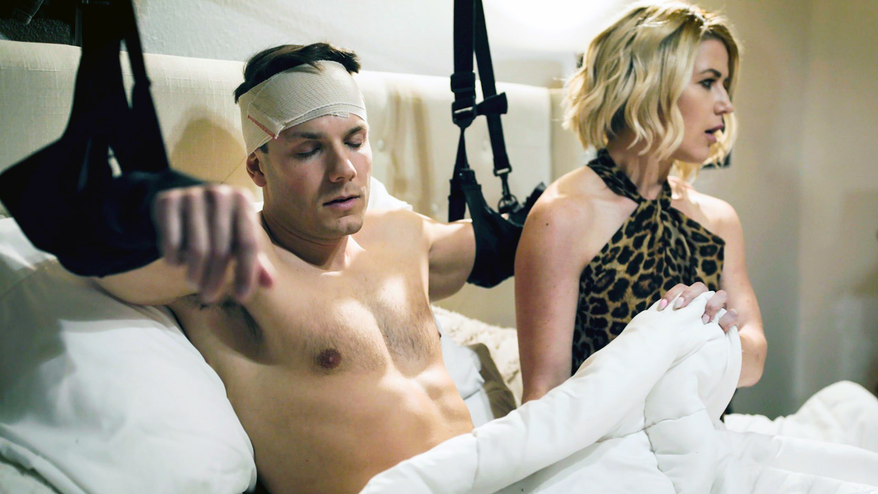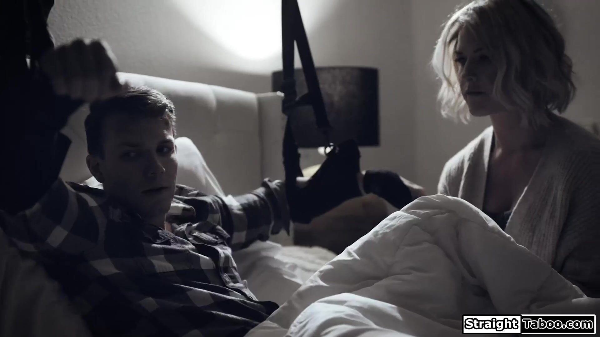 Busty stepmom Kit Mercer knows its akward but helps her stepson,who has both arms in slings,to relieve tension by giving him a handjob and blowjob.After he healed up he now expects more from the big tits milf and makes sure he is going to fuck her