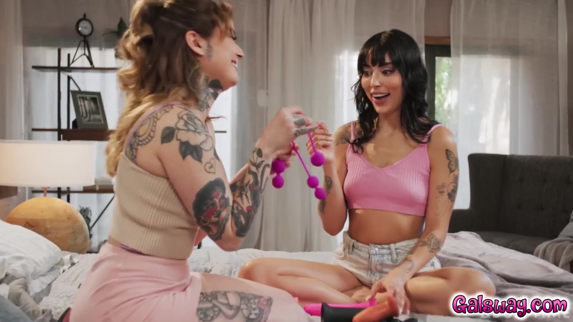 Vanessa Sky is fascinated as Vanessa Vega sexily inserts various toys in her holes, including kegel balls, buttplugs, dildos, fists, and even the heel of a shoe! Vanessa Sky eventually gets so turned on by the ballsy party trick that she has to experience some of it for HERSELF