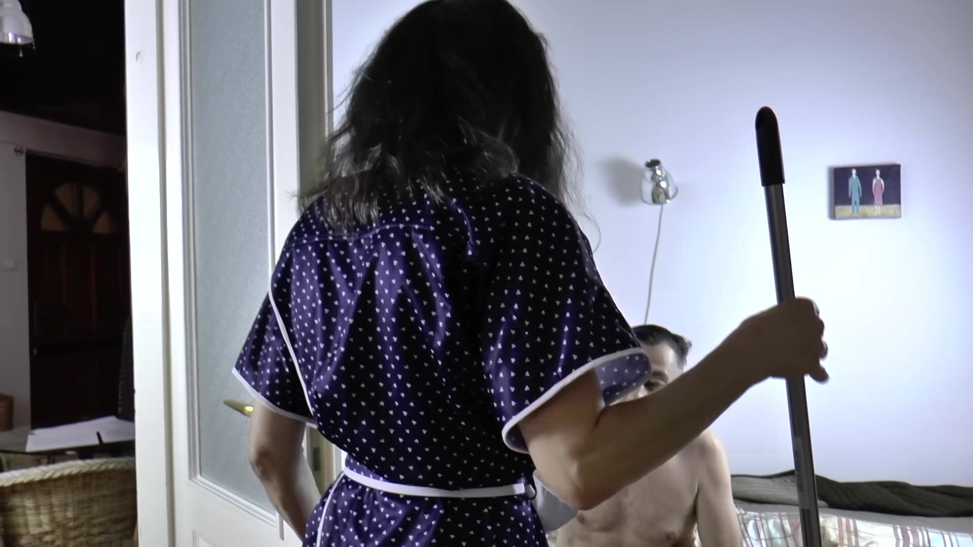 Nasty mature granny starts cleaning and ends fucked