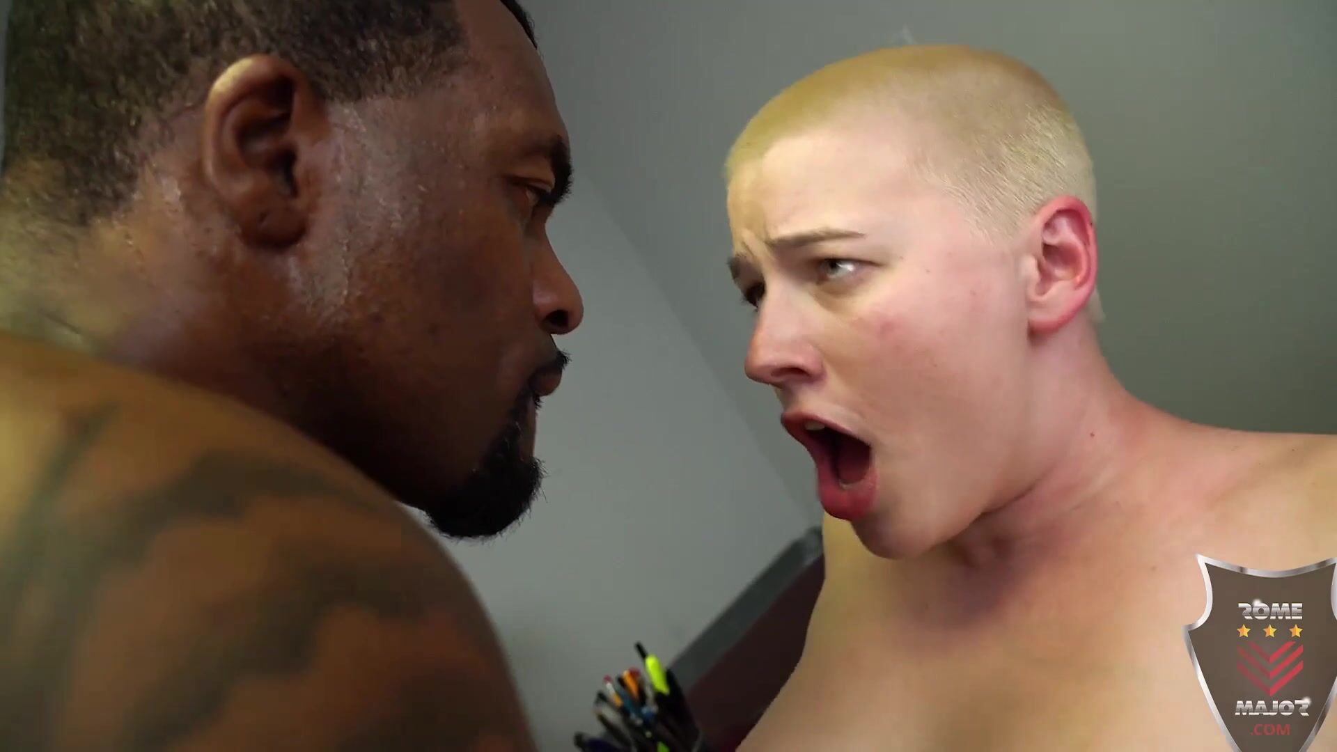 Buzzed hair Riley Nixon goes on job interview for Rome Major BBC fuck asisstent