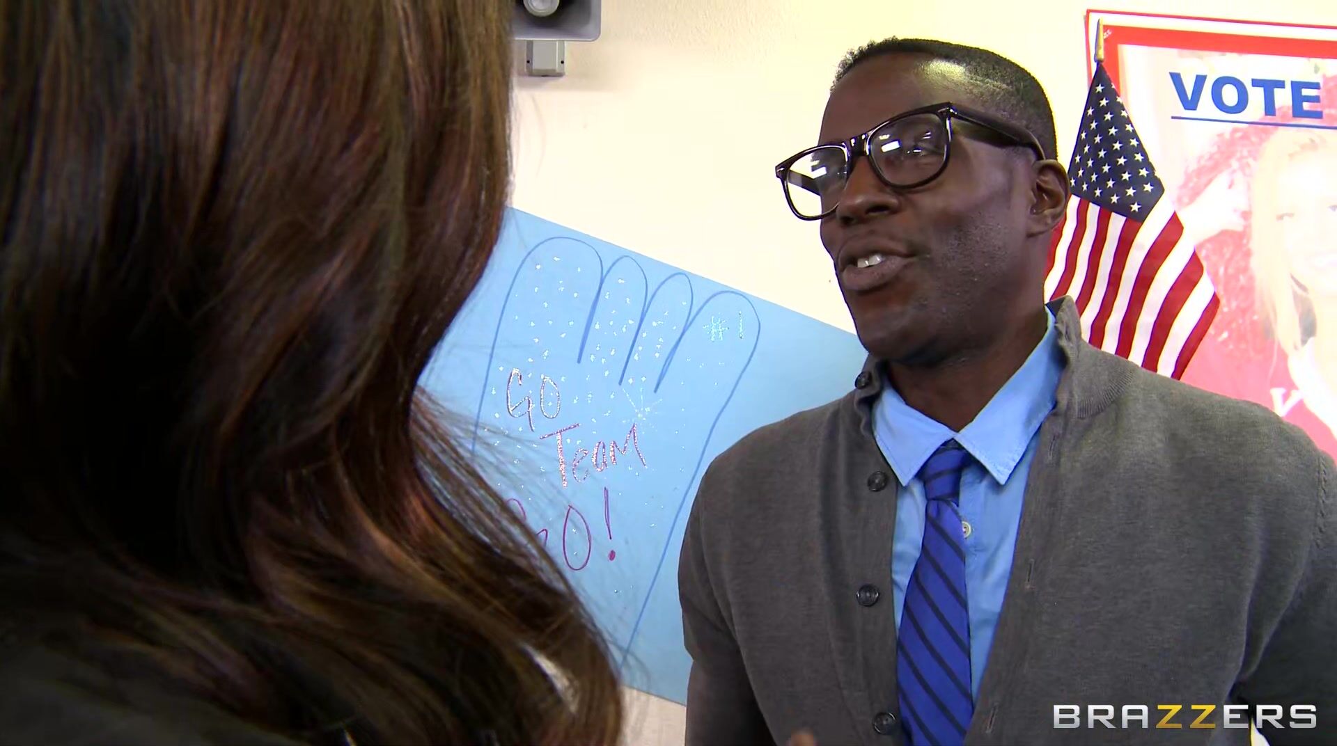 Raylene is the dean of ZZ University, a party college with a bad reputation. She's desperate for good students like Guy, but he's unimpressed with the scholarship they're offering. She quickly realizes the only way to change his mind is to pull out the big guns - aka her big tits.
