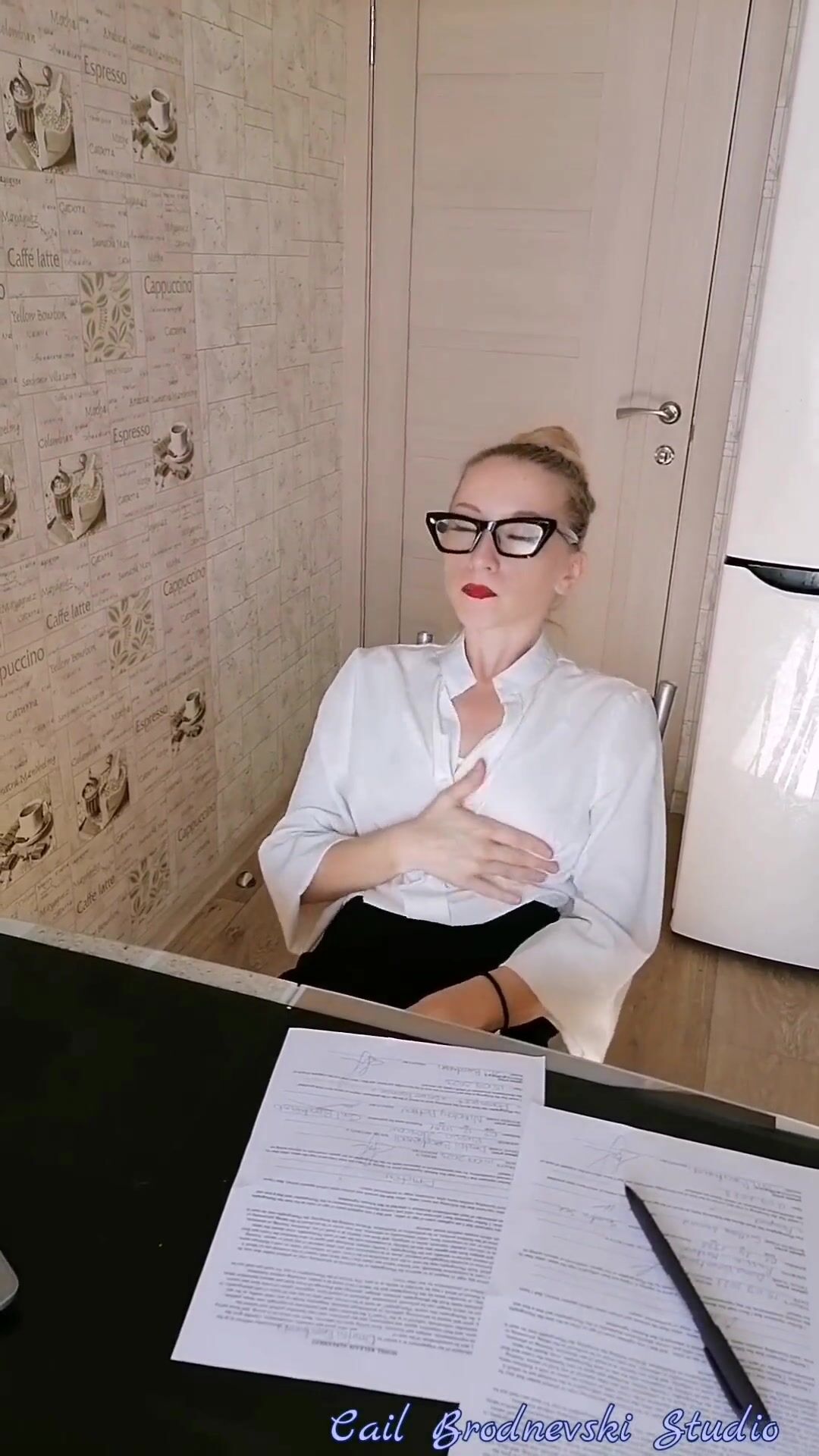 Cail Brodnevski - Horny Milf Plays An Office Slut Addicted To A Hard Cock, Takes Cum