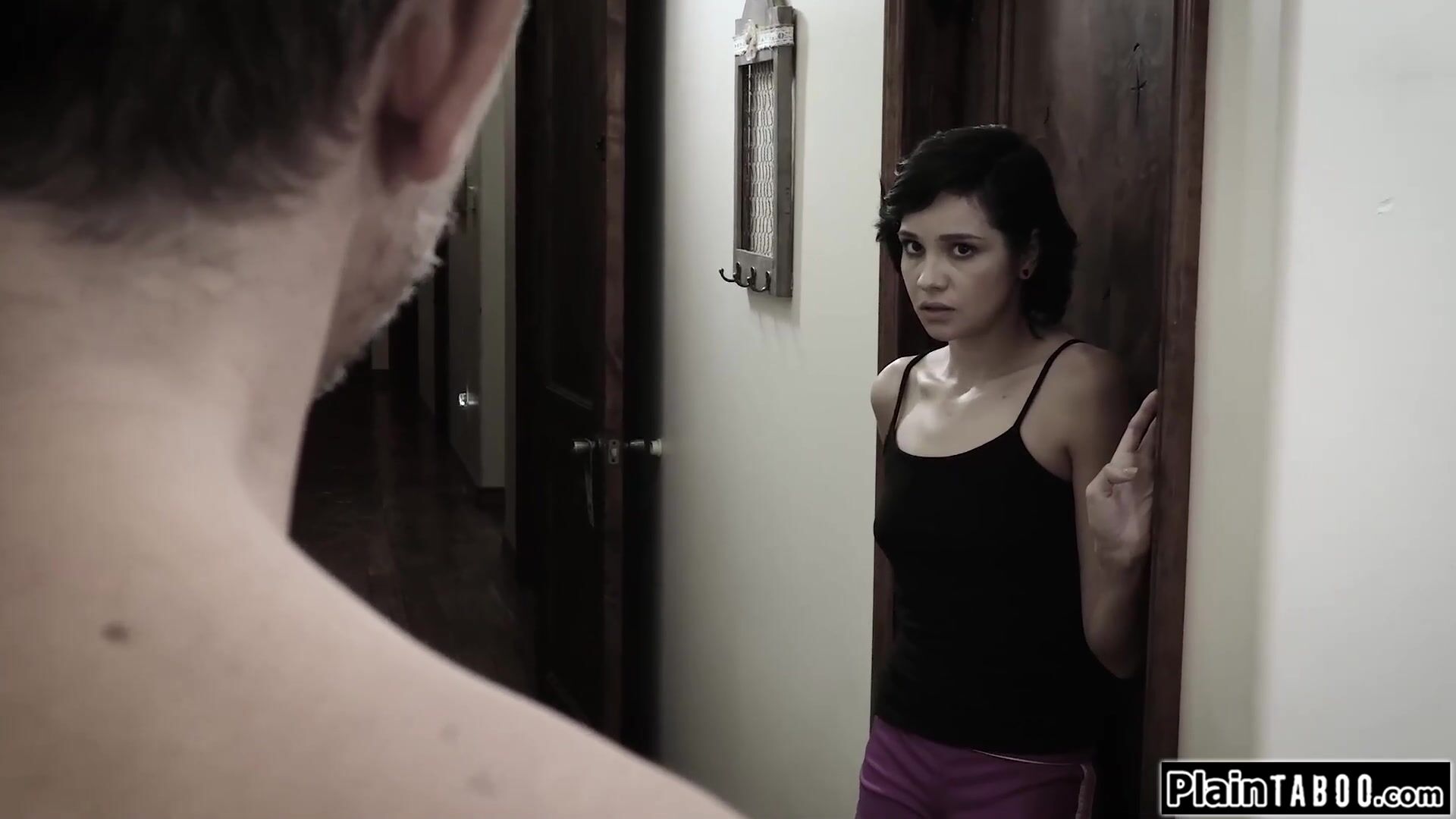 Petite teen babysitter Cadey Mercury is shocked when she walks in on her boss jerking off.He will triple her rate is shes willing to pleasure him.He pulls her nipples while she wanks his big cock.The small tits virgin sucks cock and is pussy fucked