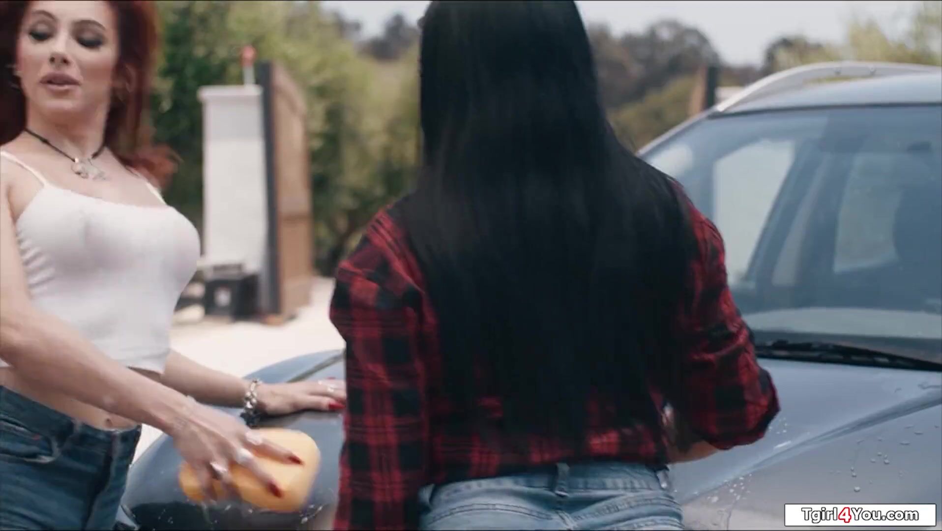 Redhead shemale Ariel Demure feeling dirty and her milf gf Romi Rain is ready to clean her up.The busty tgirl sucks on the brunettes big boobs and gets her big tranny dick sucked off.The trans licks and bangs her shaved pussy with her ts boner