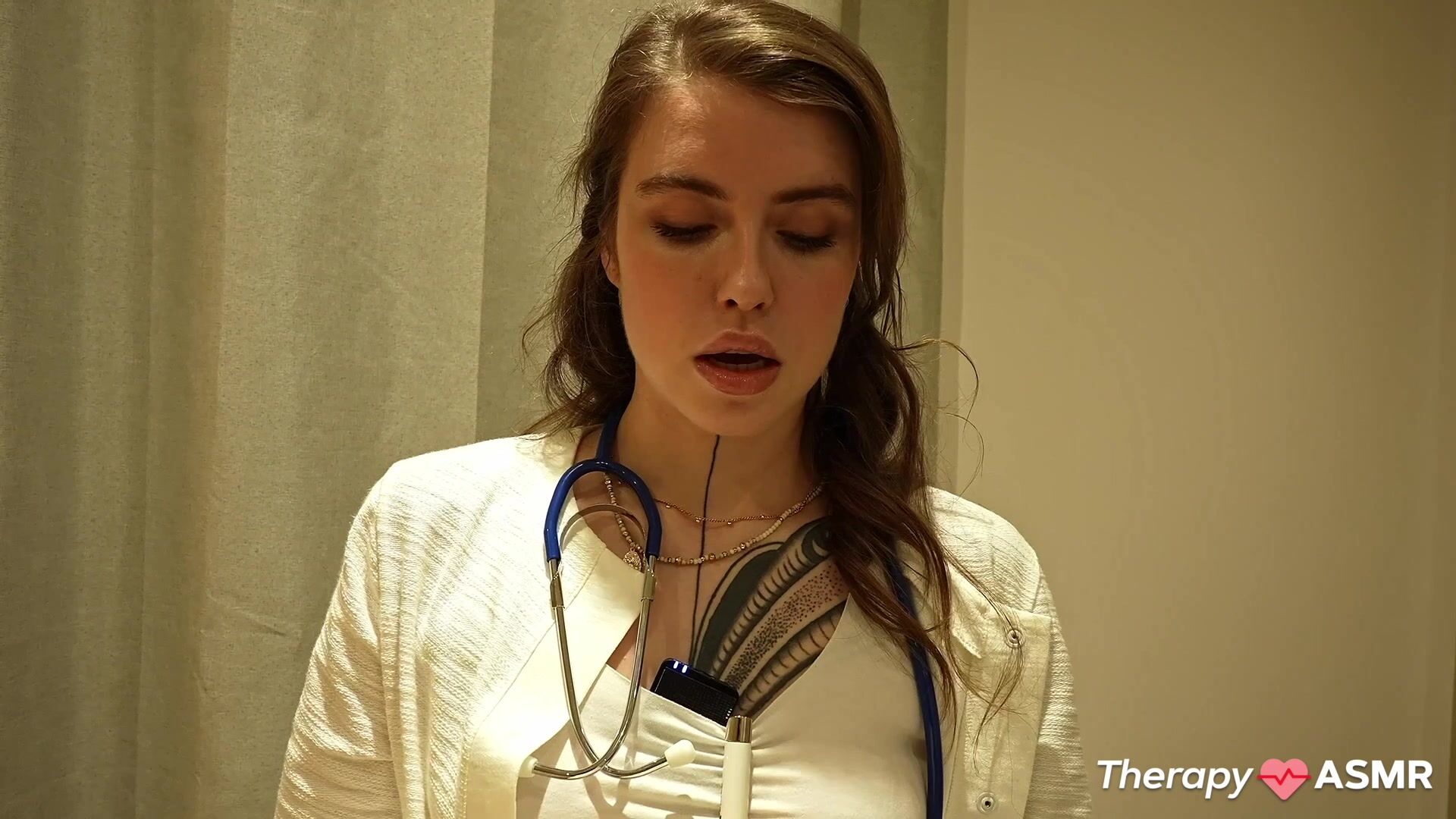 Nymphomaniac Mia visited Dr. Eden. That girl has more sex than Lent. She's had a lot of partners, and she's never been in a relationship. The doctor's first touch and Mia had a horny sparkle in her eyes. Her breathing is deeper because she is sensitive to touch. CHECK OUT Part 2 only at: www.therapyasmr.com at 4K !