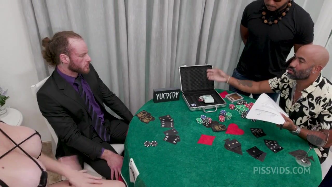 Bruna Santos - Cuckold Husband Looses Cards Game and His Beautiful Wife, Has To Pay His Debt With Her Body Doing DAP, DP and Getting Drink By 5 Guys